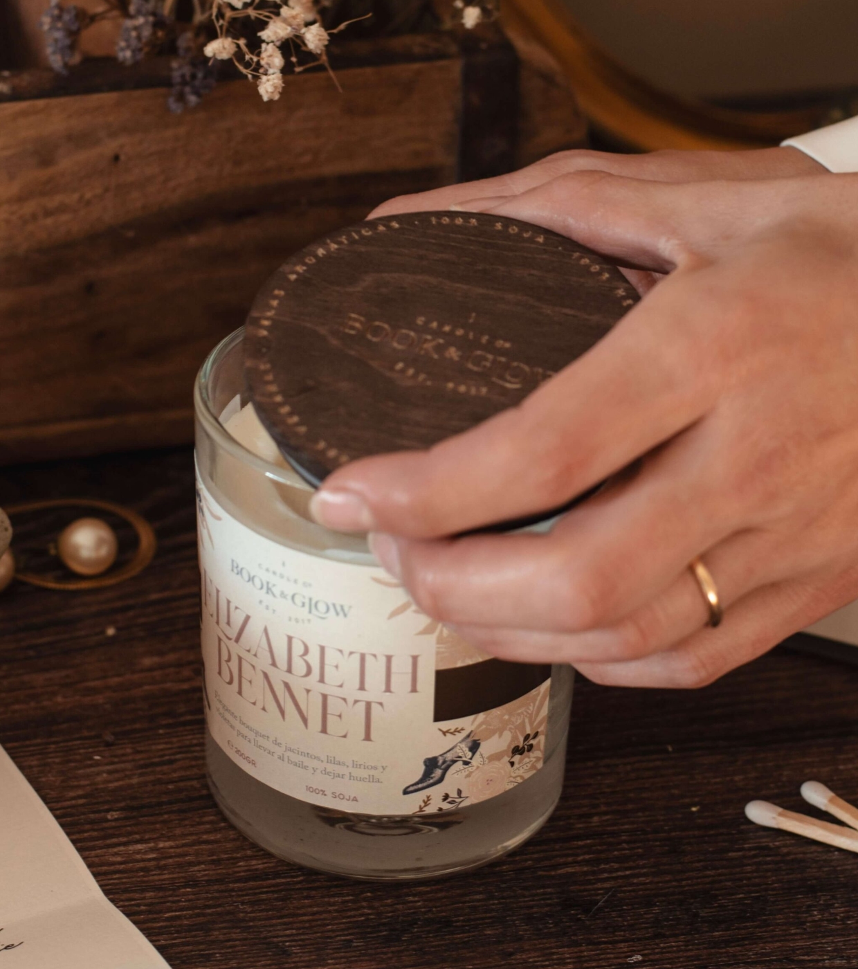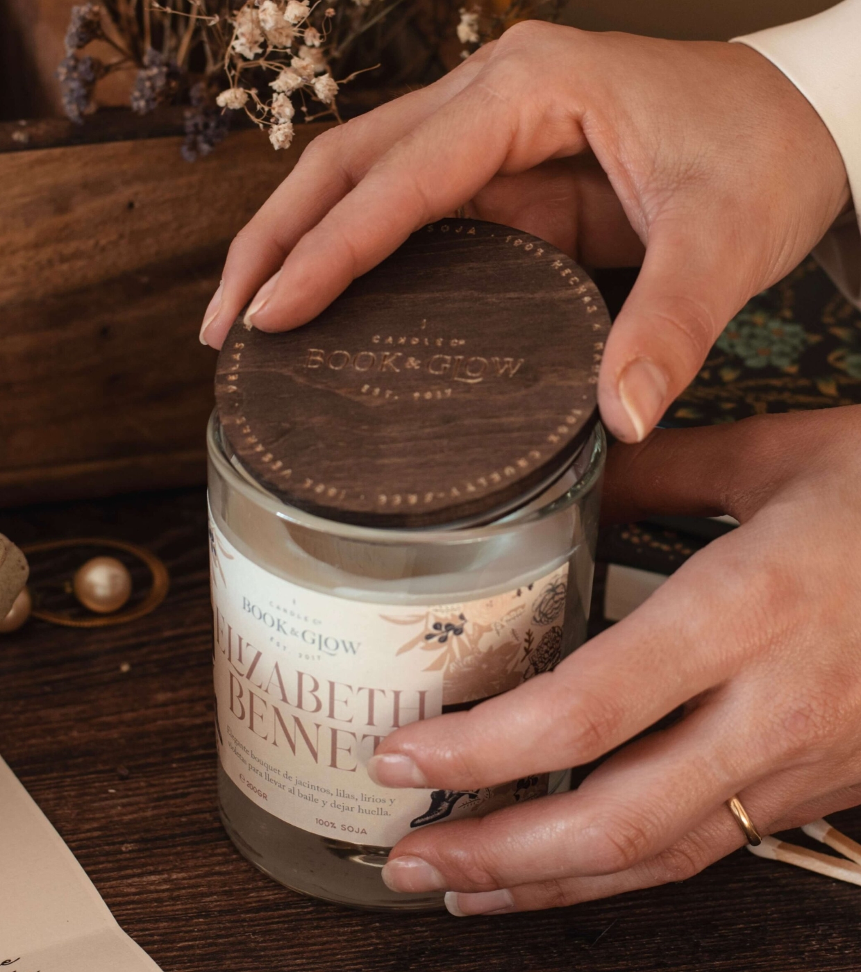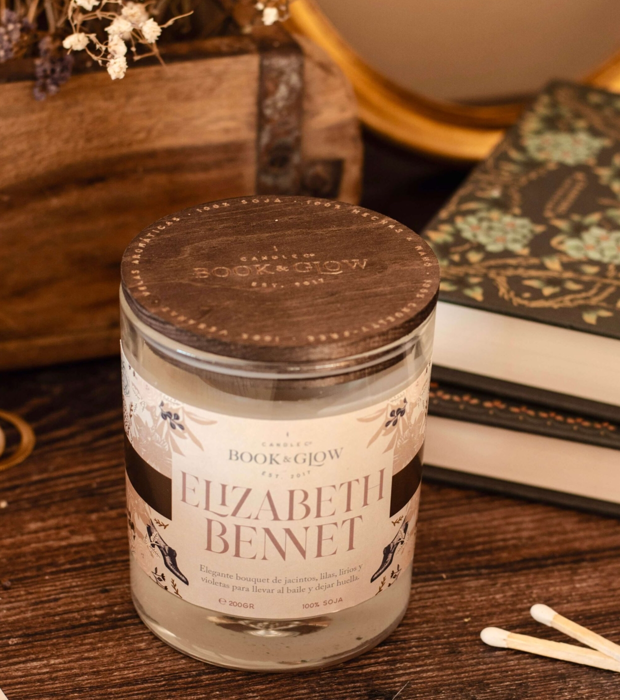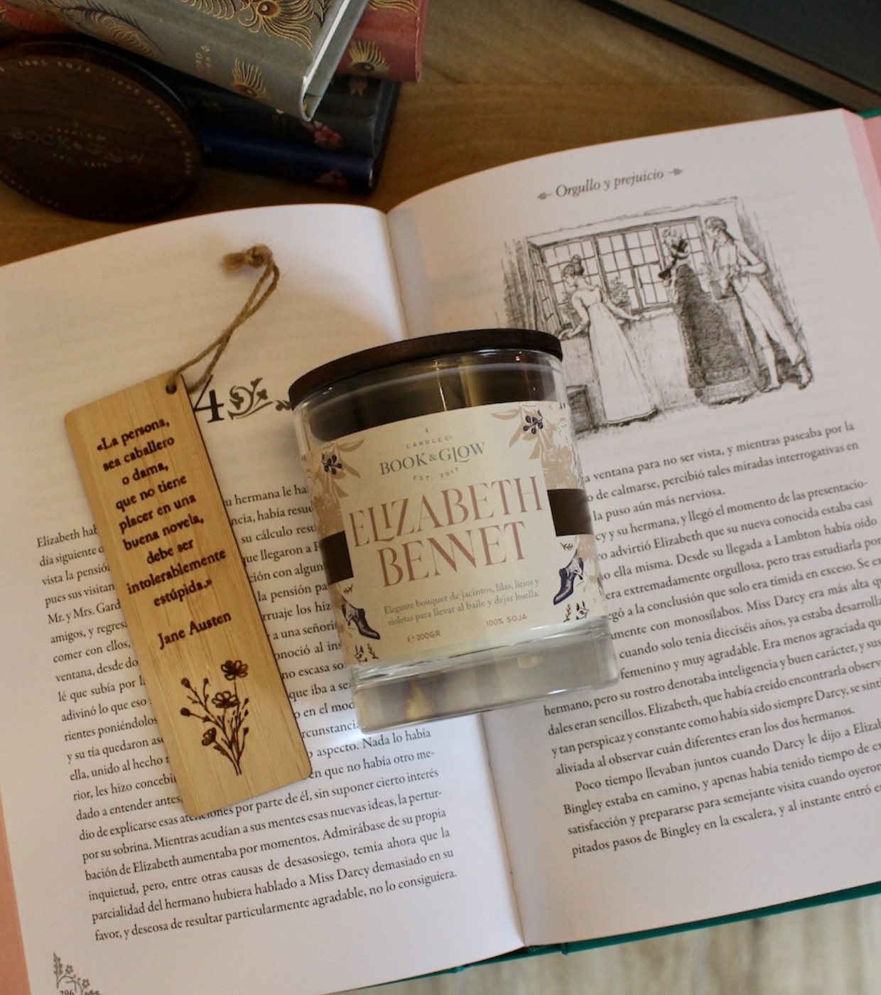 Soy candle from the Extraordinary Worlds collection by Book and Glow. Elizabeth Bennet.