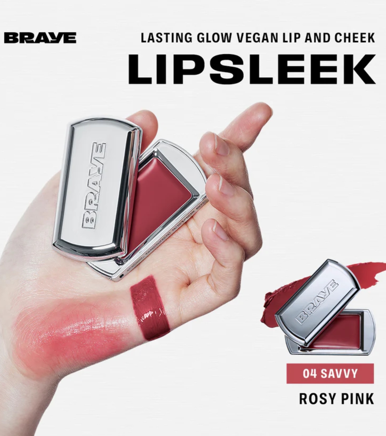 Lipsleek by BRAYE is a multi-function lip and cheek balm that deeply moisturizes and provides a soft, buildable color with a velvety semi-matte finish.