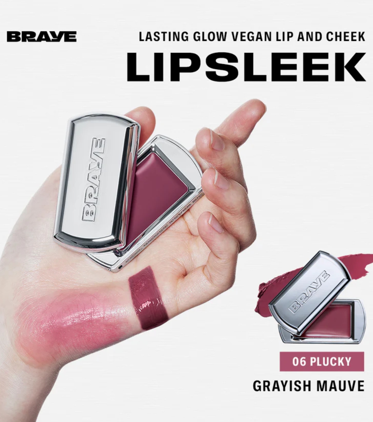 Lipsleek by BRAYE is a multi-function lip and cheek balm that deeply moisturizes and provides a soft, buildable color with a velvety semi-matte finish.