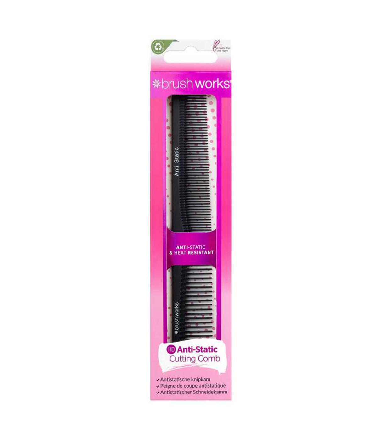 The Brushworks Anti-Static Cutting Comb glides effortlessly through your hair without breaking or damaging it, gently.