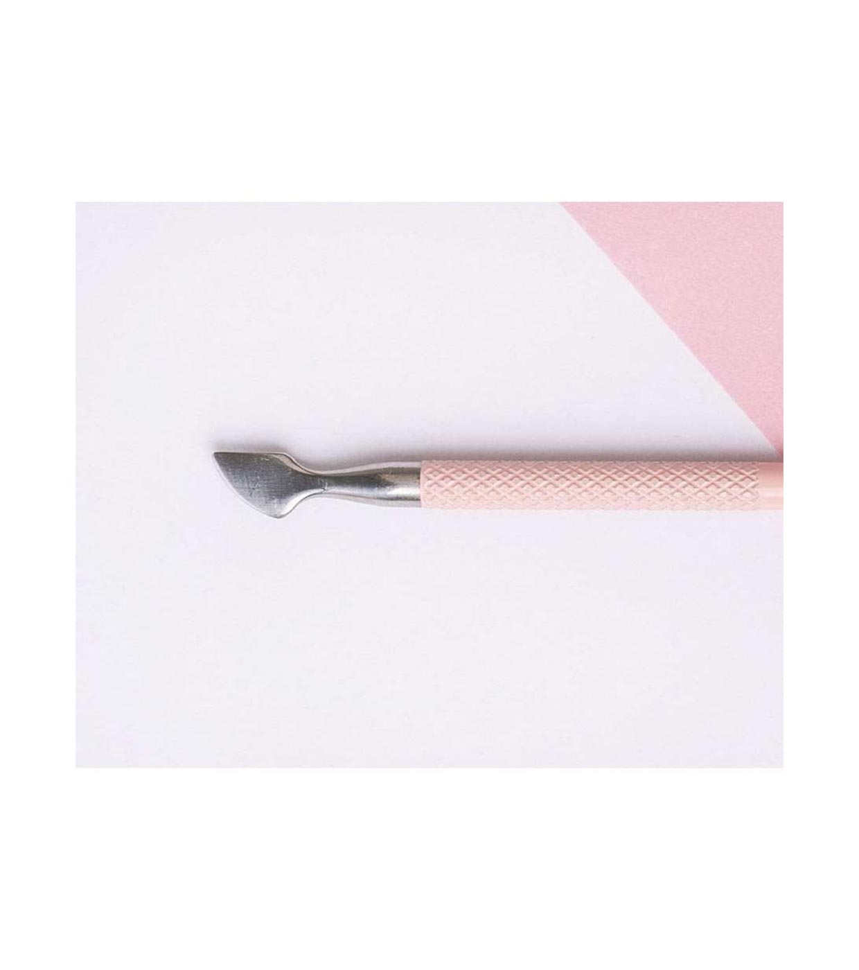 It has two ends: a rounded end to perfectly follow the shape of the cuticles and push them, and a thinner, pointed end designed to push into the corners and hard-to-reach areas of the cuticle.