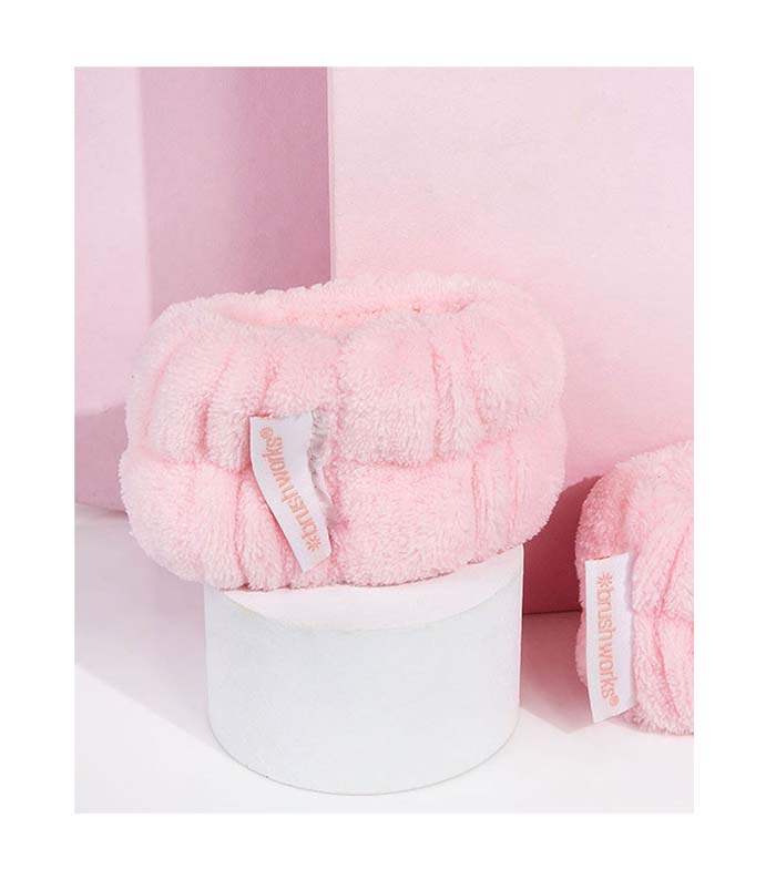 Ultra-soft microfiber wristbands to absorb excess water during facial washing.