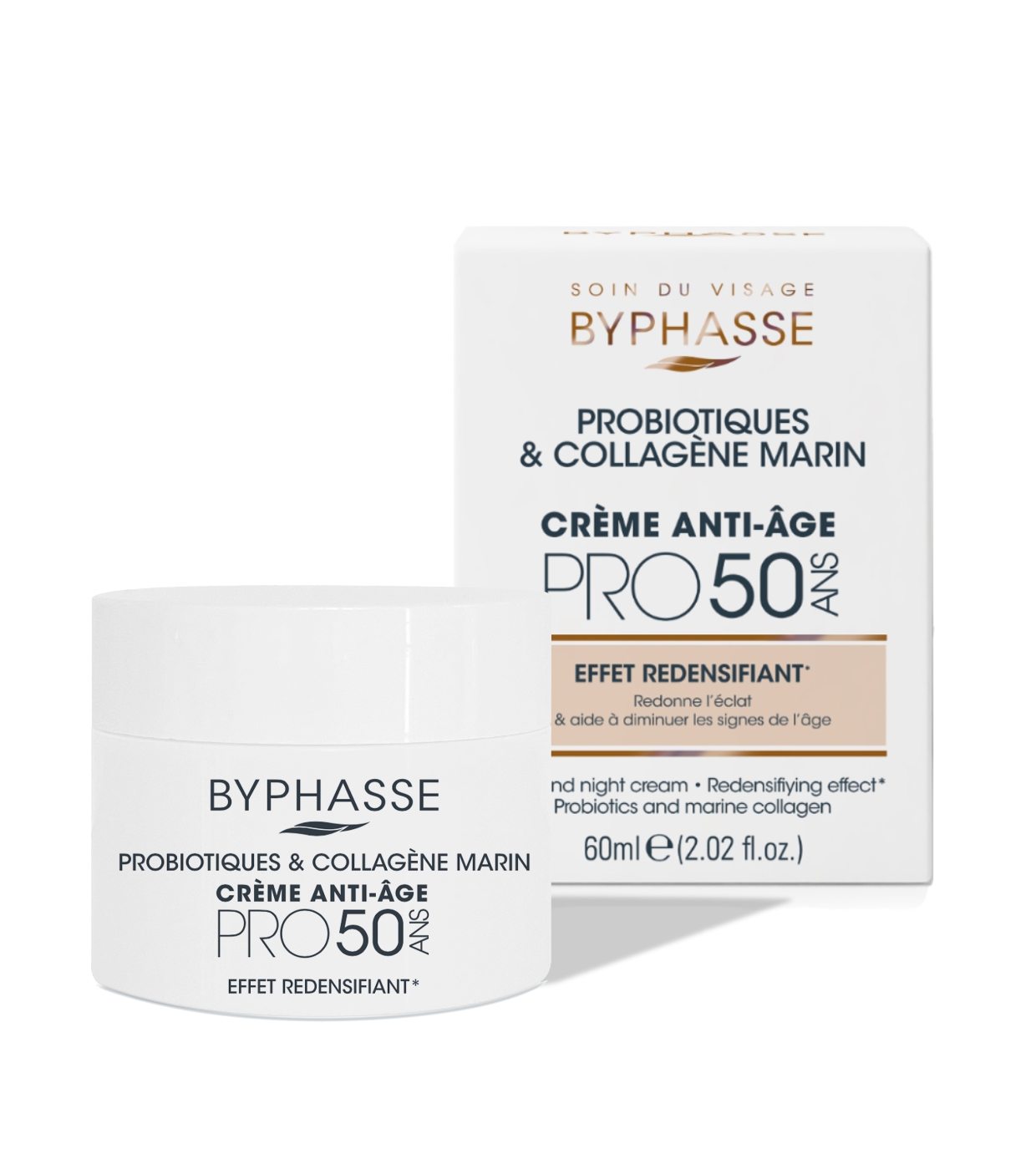 Byphasse's PRO50 Redensifying anti-aging cream contains a powerful anti-aging active ingredient that helps to recover skin density, skin luminosity and stimulates microcirculation, achieving an anti-wrinkle effect.