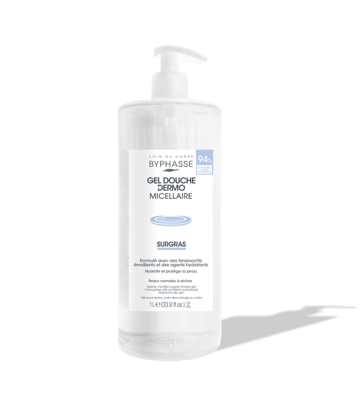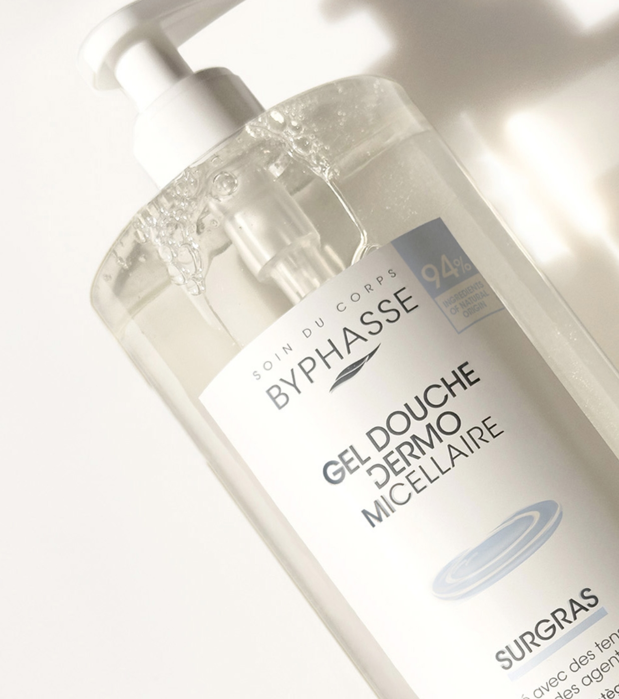 The Surgras shower gel from Byphasse is formulated with gentle ingredients and a neutral pH that respects the natural balance of the skin after each shower.