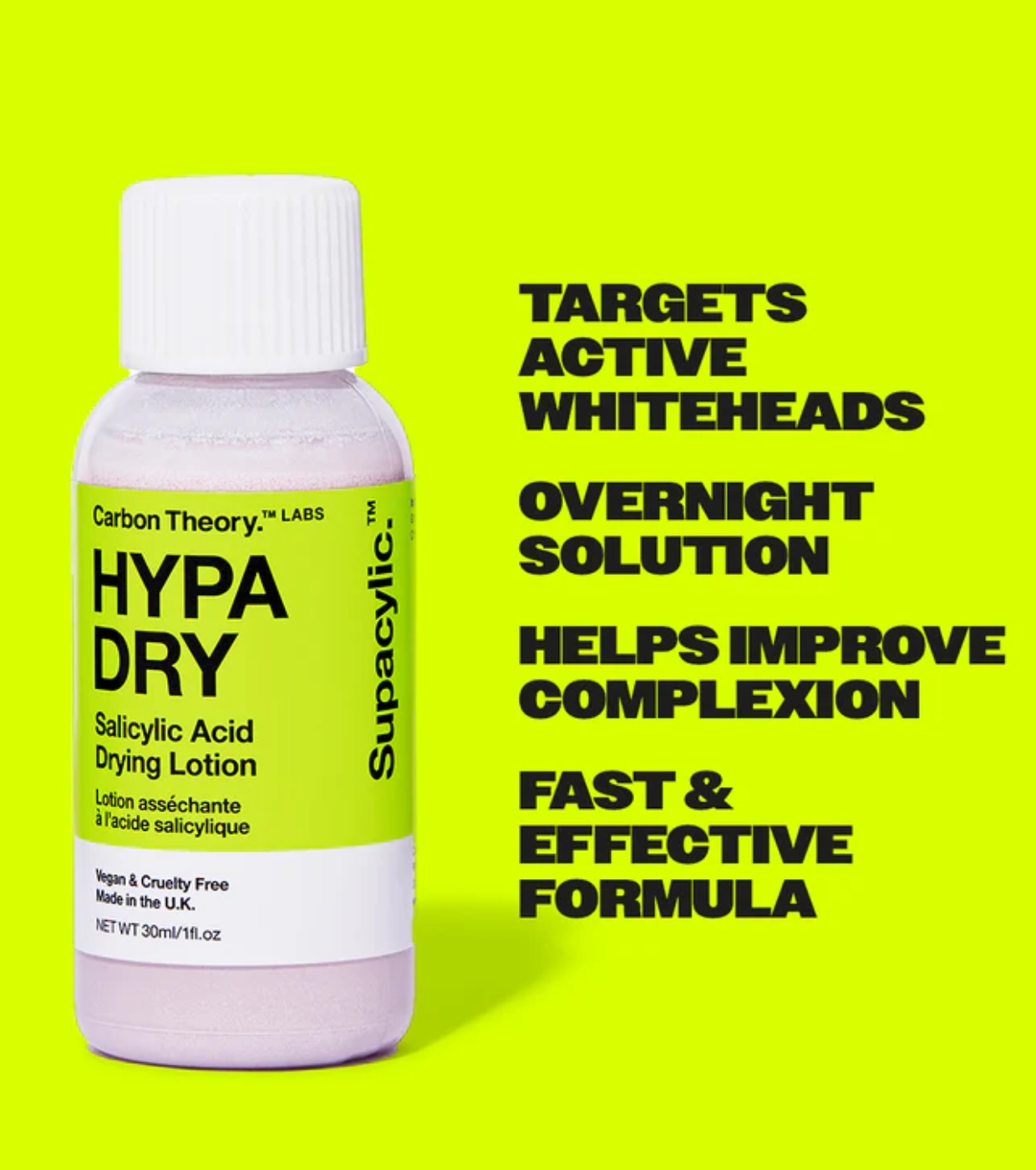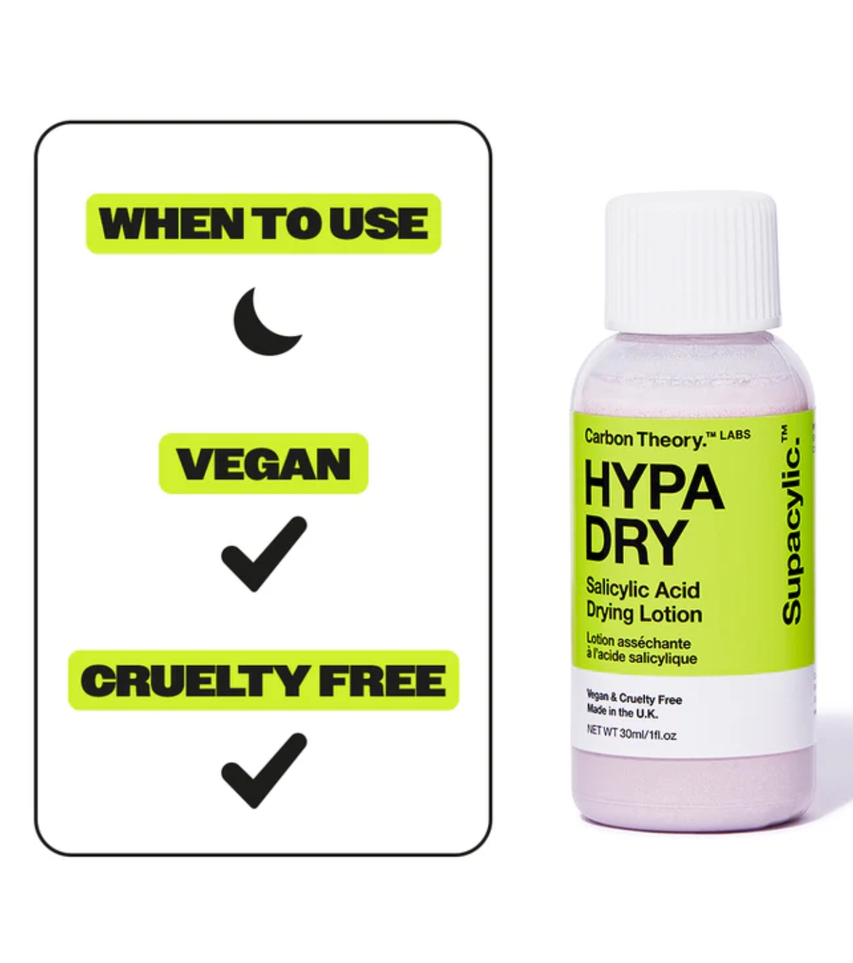 Carbon Theory 2% Salicylic Acid Facial Lotion is designed to act directly on active whiteheads overnight, reducing inflammation and accelerating their disappearance without damaging the skin.