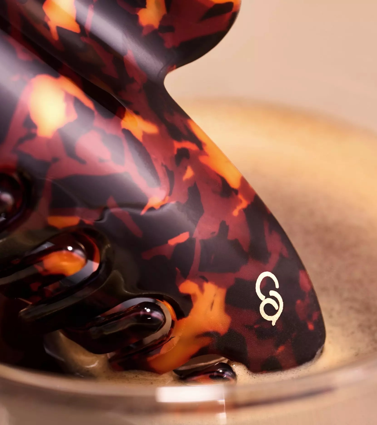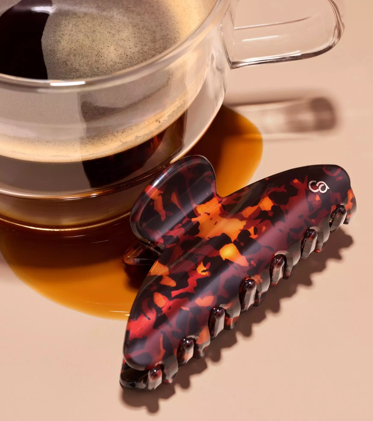 Inspired by the smoothness of a cappuccino and the intensity of espresso, this clip combines light and dark brown tones in a glossy marbled finish, perfect for adding a touch of style to your everyday look.