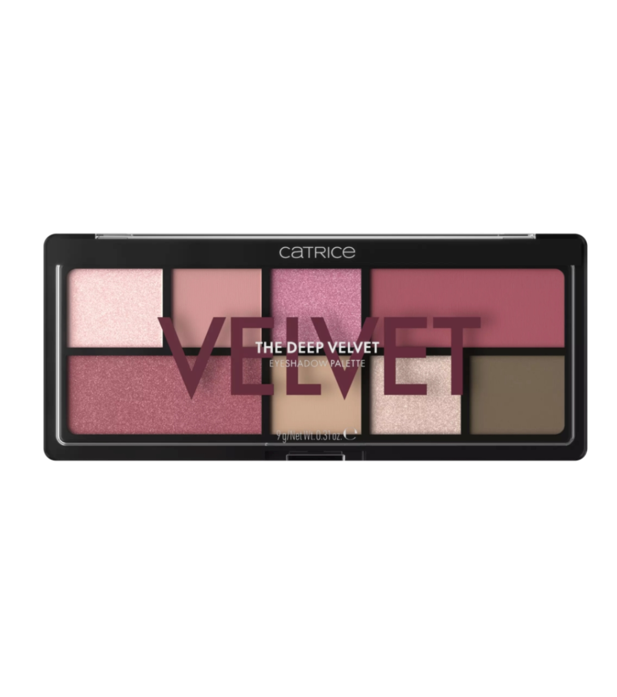 The Catrice The Deep Velvet eyeshadow palette combines elegant warm burgundy tones with soft nude shades, perfect for achieving everything from a natural everyday makeup look to an intense and sophisticated evening look.