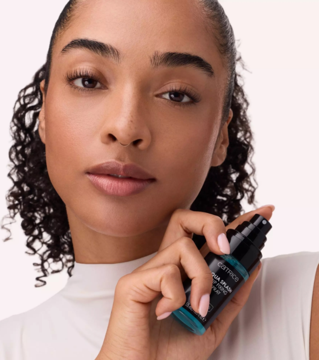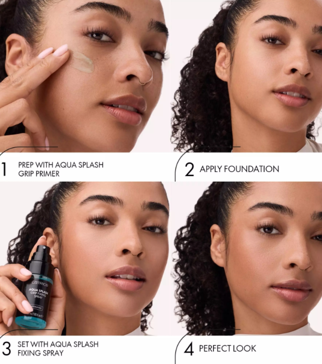 Set your makeup with a refreshing touch thanks to the Aqua Splash Grip setting spray from Catrice .