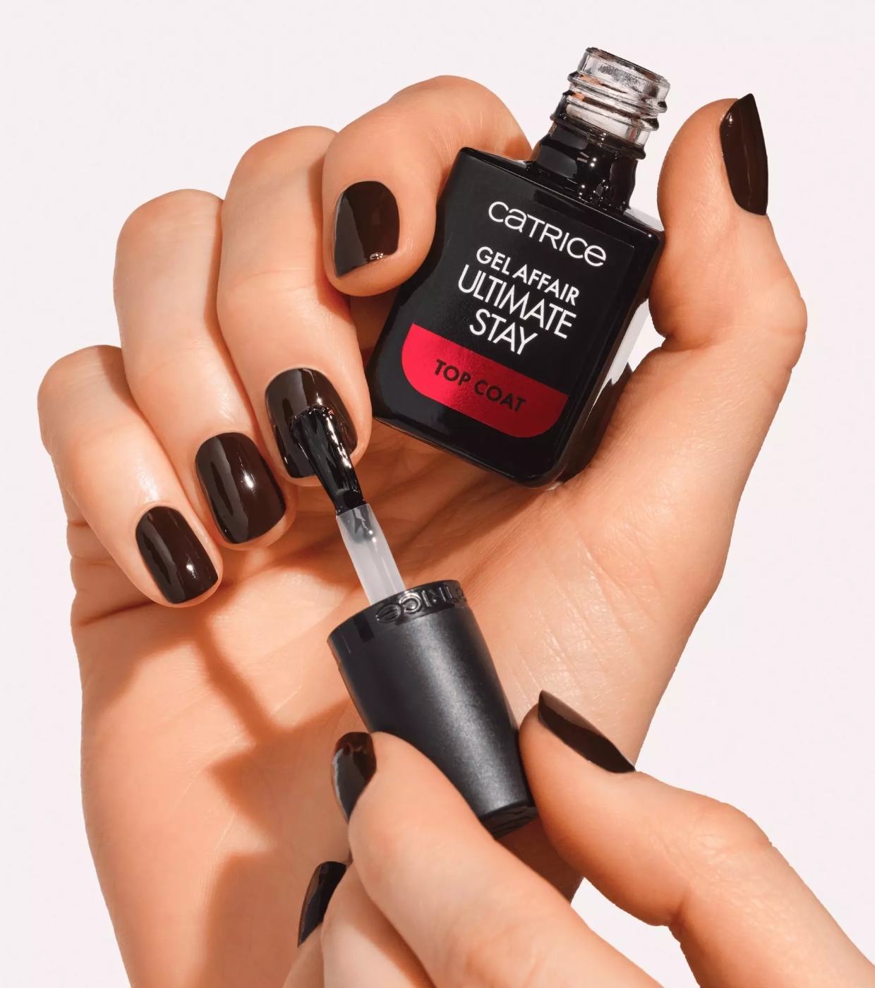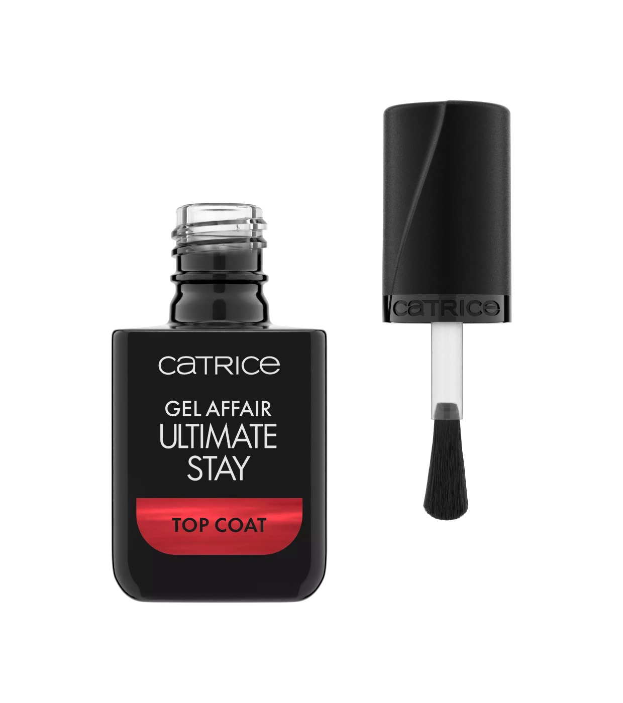 Seal the deal with your perfect gel manicure! Catrice Gel Affair Ultimate Stay Top Coat provides an ultra-shiny, voluminous finish while prolonging the wear of your nail polish—no UV lamp required!