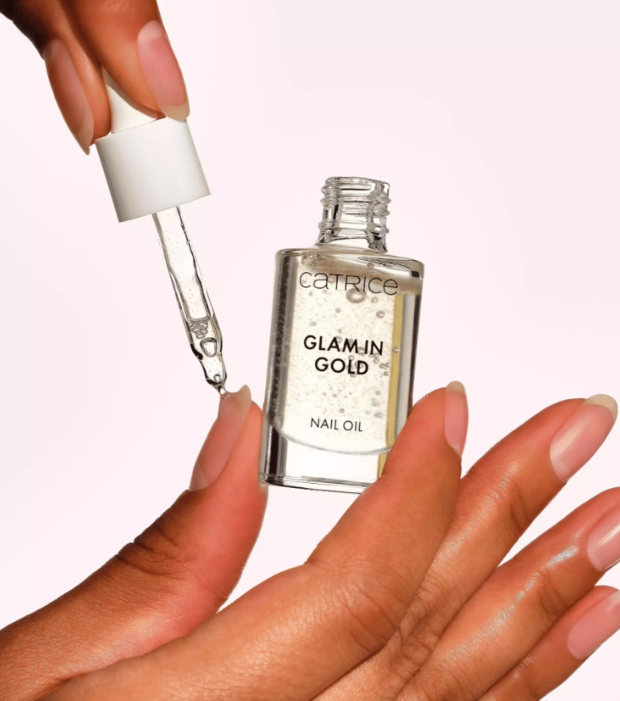 Pamper your nails and cuticles with a touch of luxury thanks to the Glam In Gold nail oil from Catrice .