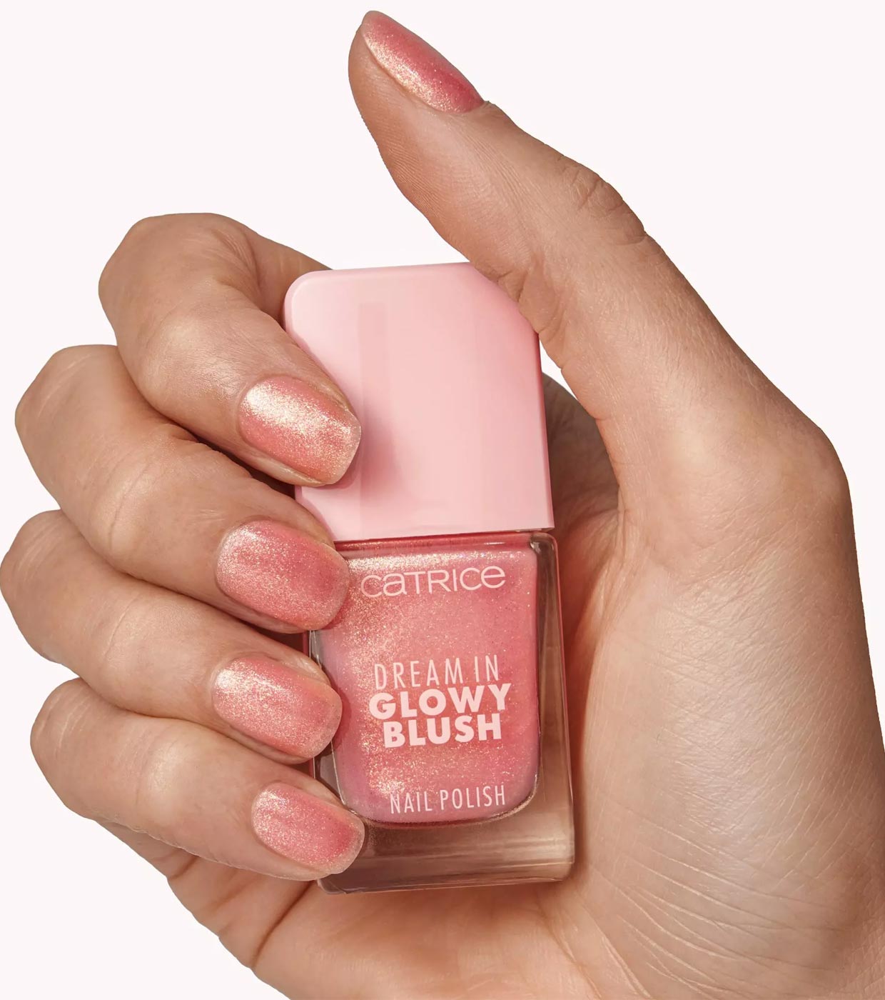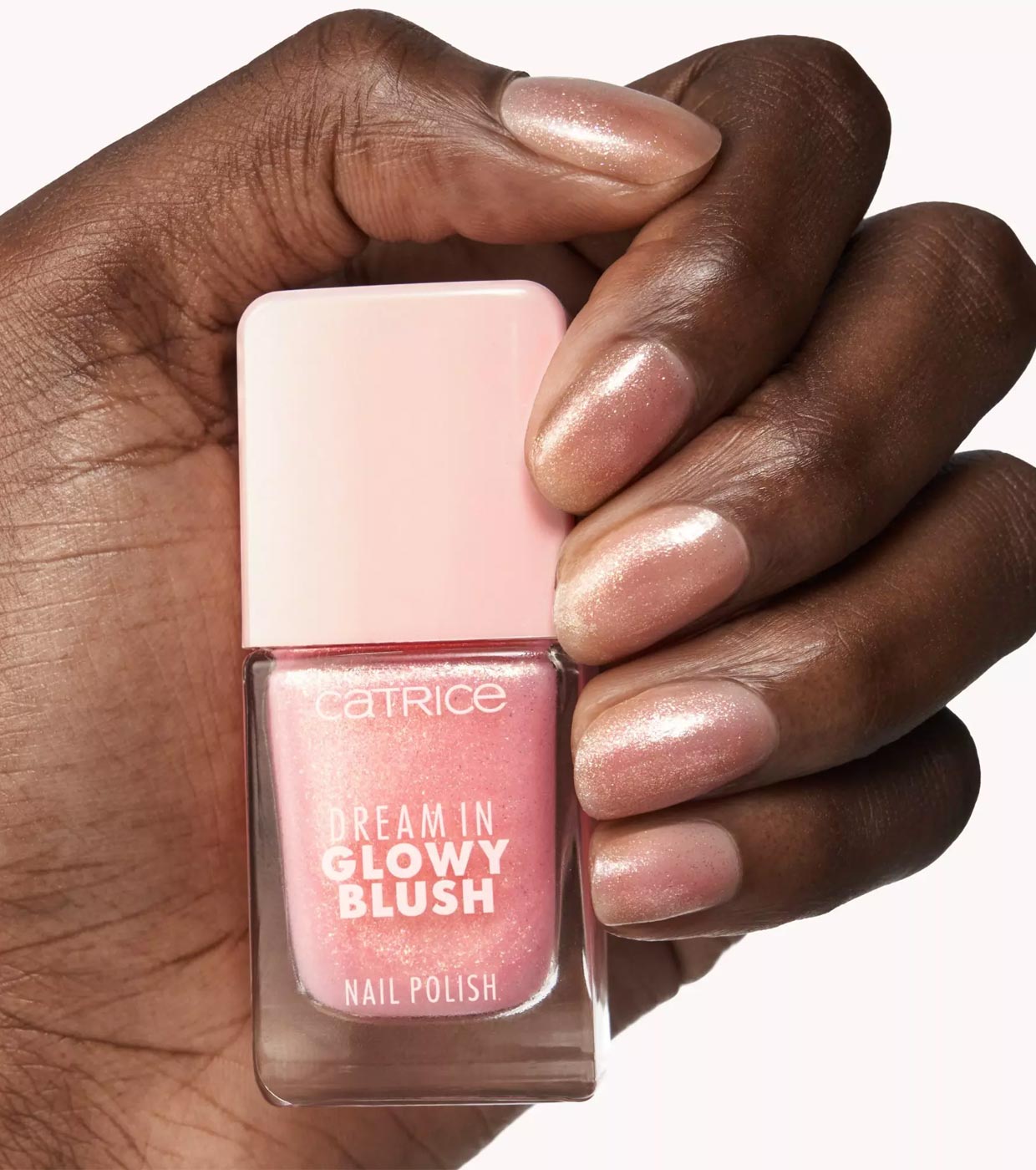 Dream In Glowy Bush 080 Rose Side of Life polish by Catrice gives your nails a sophisticated pink shimmer.