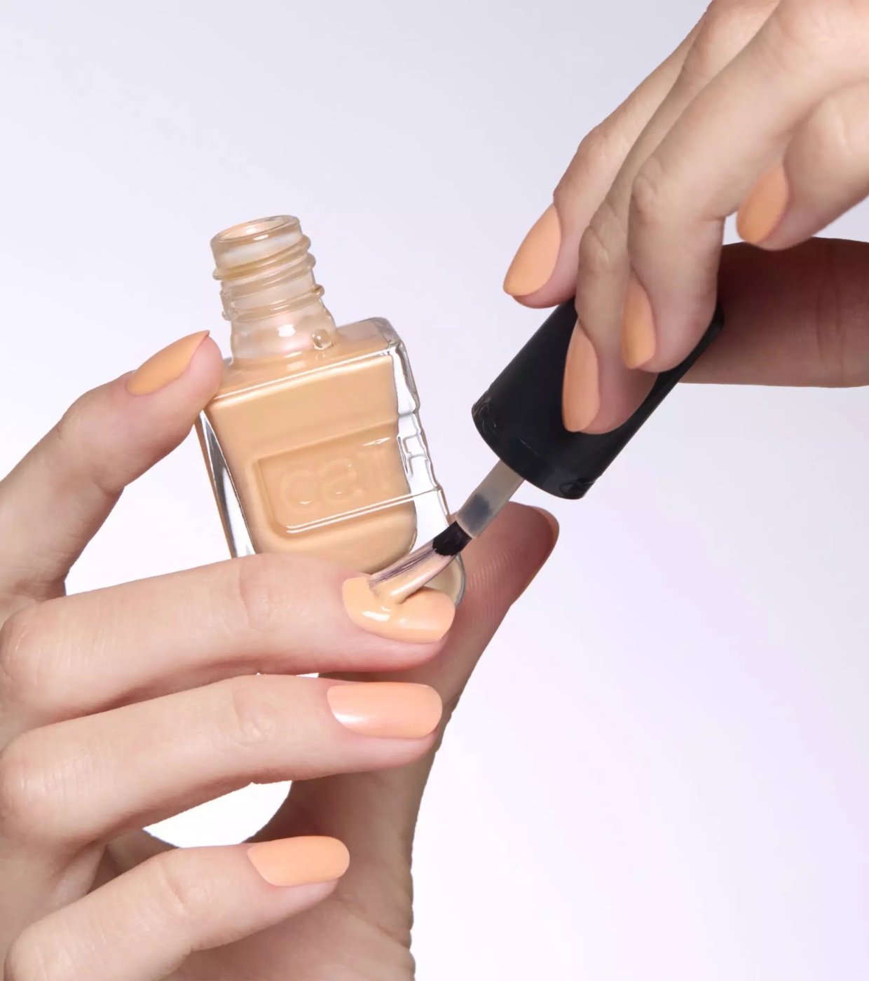 Discover Gel Affair nail polish from Catrice , designed to offer a gel-like finish with spectacular shine and a duration of up to 7 days, without the need for a base, top coat or UV lamp.