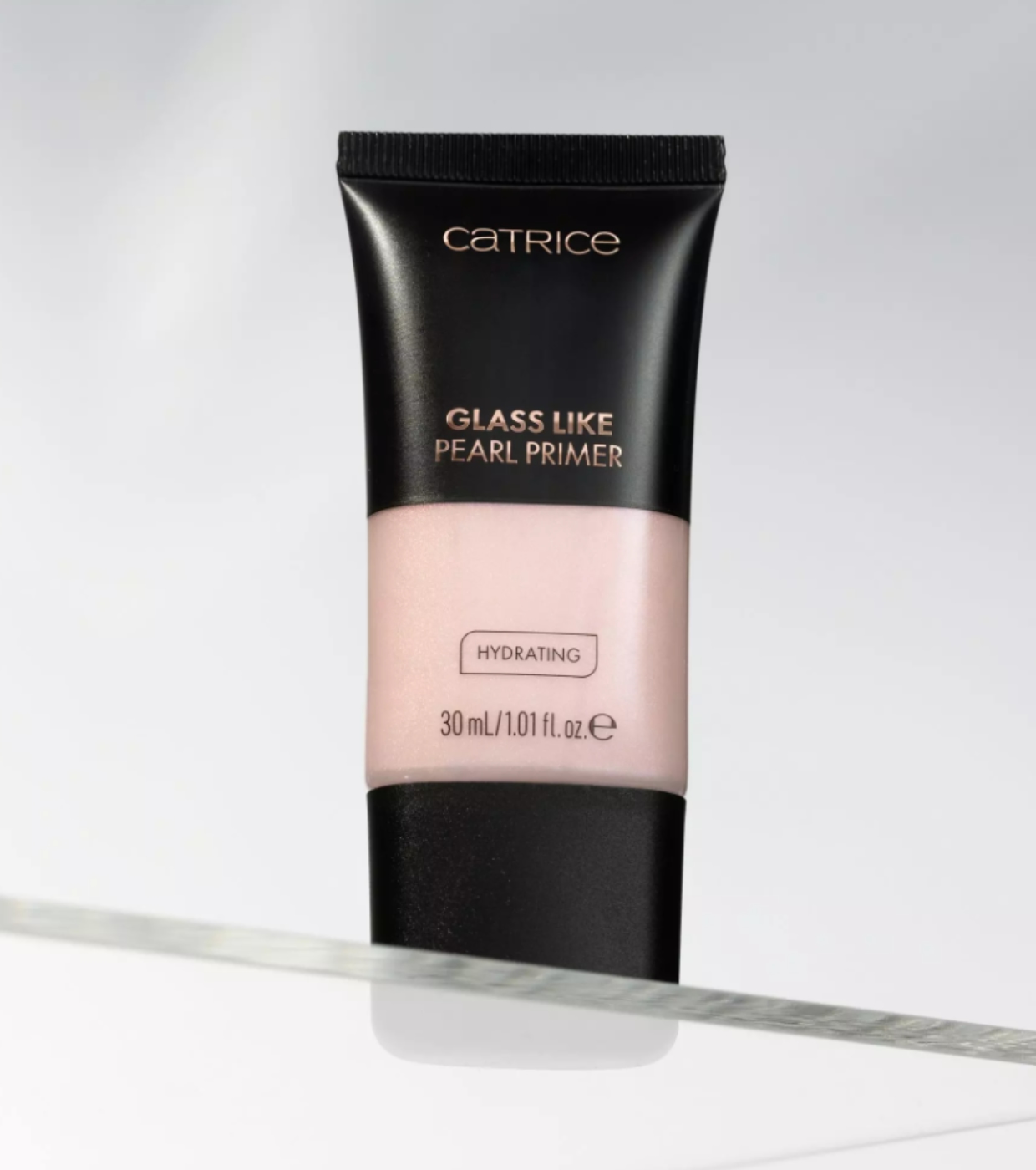Achieve a luminous makeup look and a glass-like skin effect with the Glass Like Pearl Primer from Catrice .