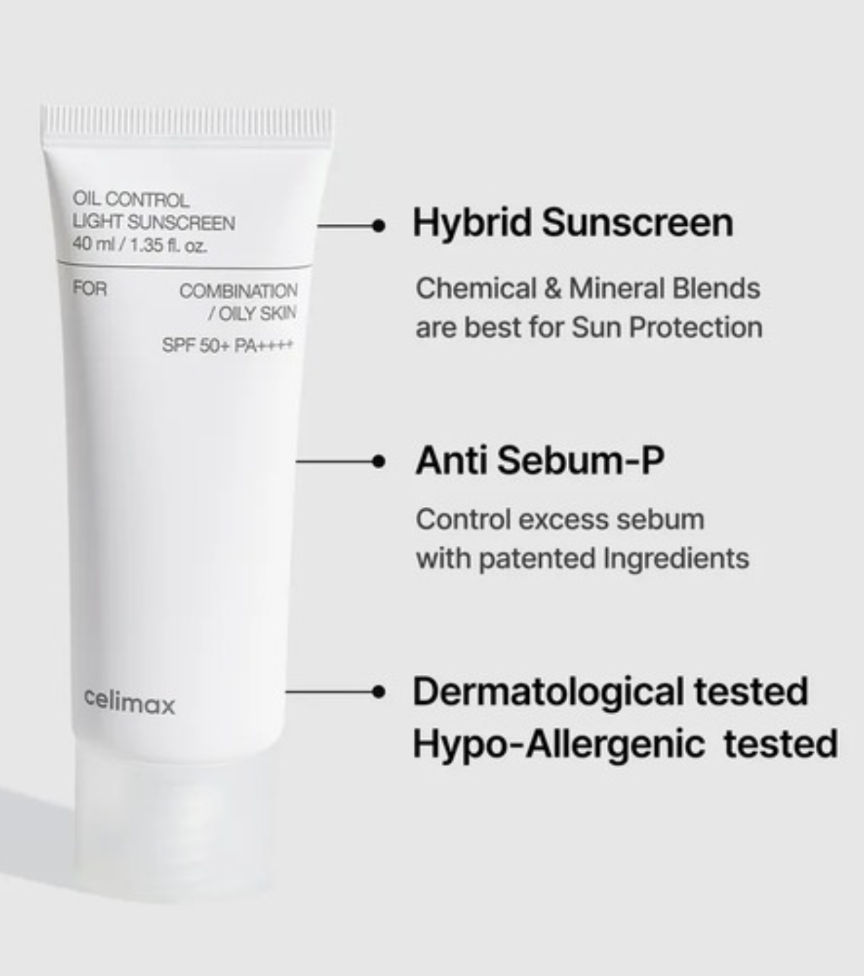 Oil Control Light Sunscreen SPF 50+ PA++++ from Celimax is a next-generation hybrid sunscreen, specially formulated for combination, oily and acne-prone skin.