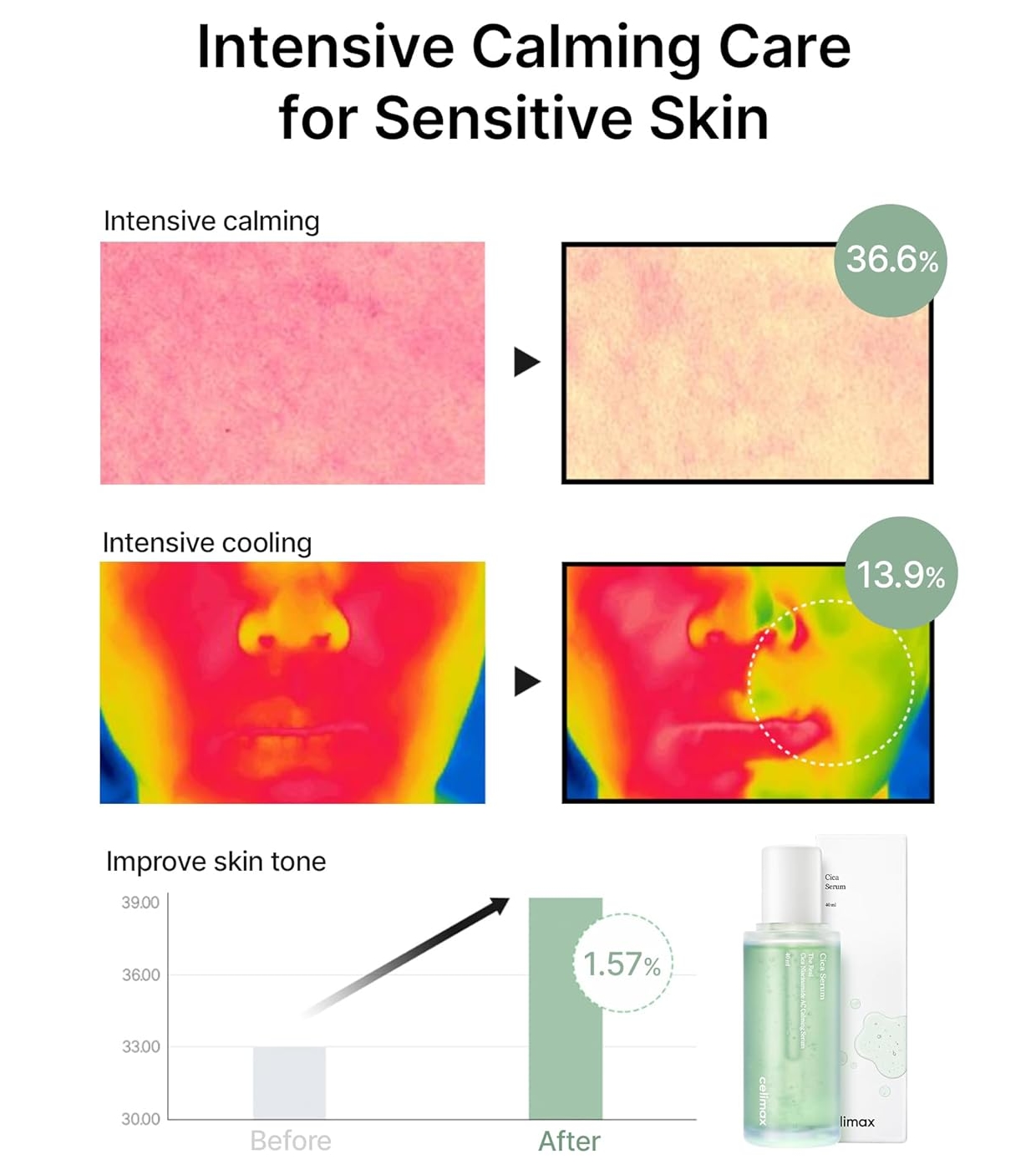 - Sensitive, irritated or red skin.