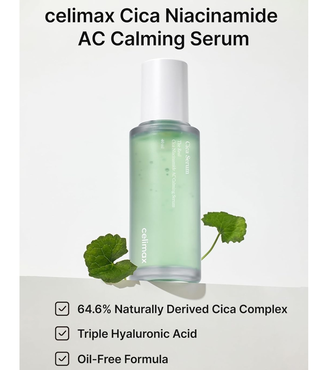 The Real Cica Niacinamide AC Calming Serum's Celimax is an ultra-light, non-greasy facial serum formulated to soothe, hydrate and balance even the most sensitive skin.