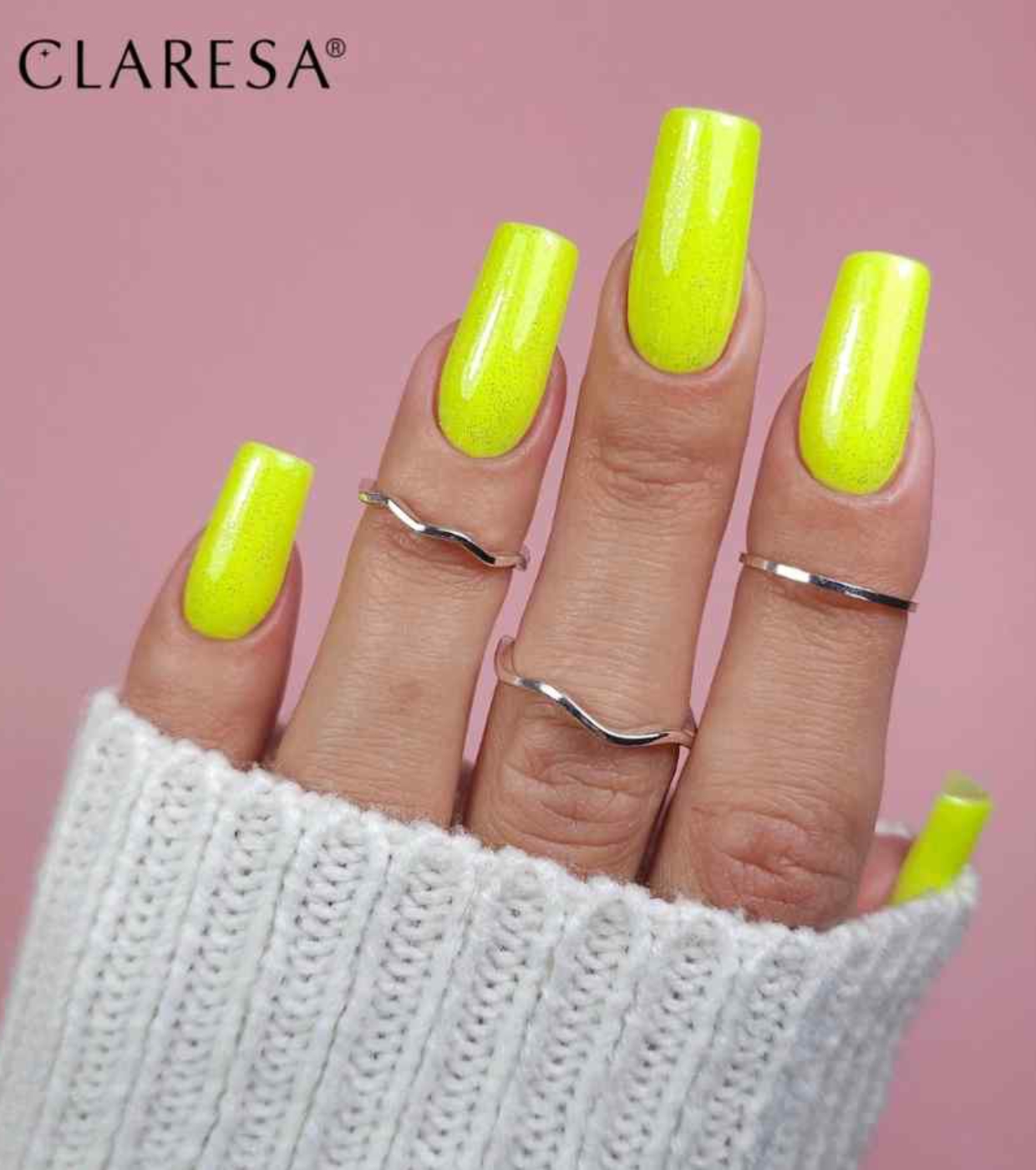 Claresa's Funky Disco collection includes 7 semi-permanent polishes in vibrant shades of pink, orange, yellow, green, blue and purple, all adorned with thousands of shiny particles.