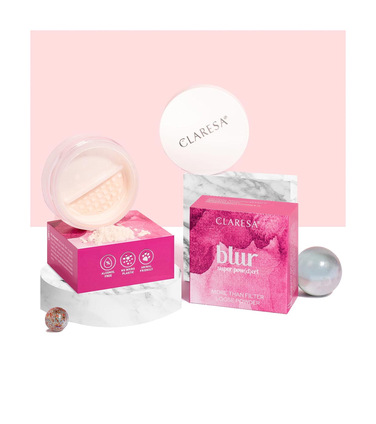 Loose powder Blur Super Pow(d)er! by Claresa provides this fantastic optical smoothing effect of pores and unwanted expression lines.