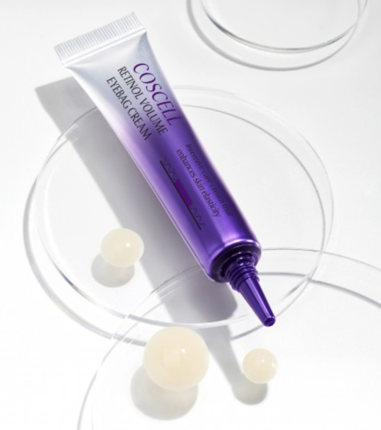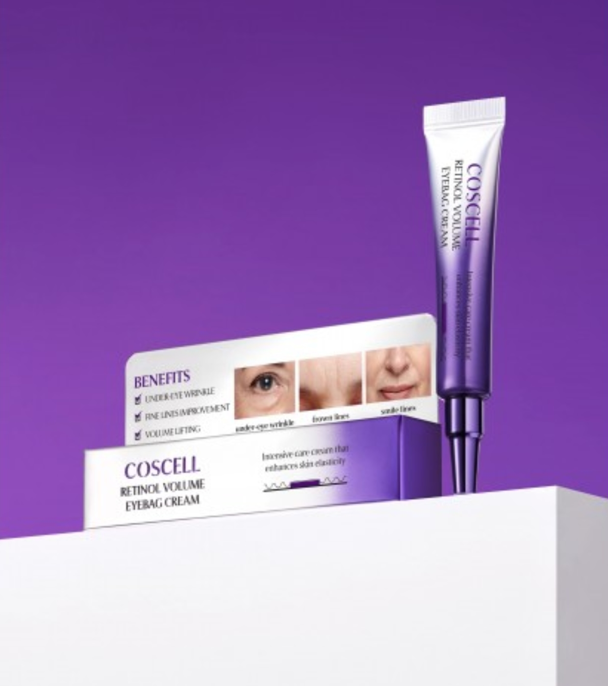 The Retinol Volume Eye Bag Cream from COSCELL is a targeted eye contour treatment formulated to smooth fine lines, improve firmness and visually reduce the appearance of bags.