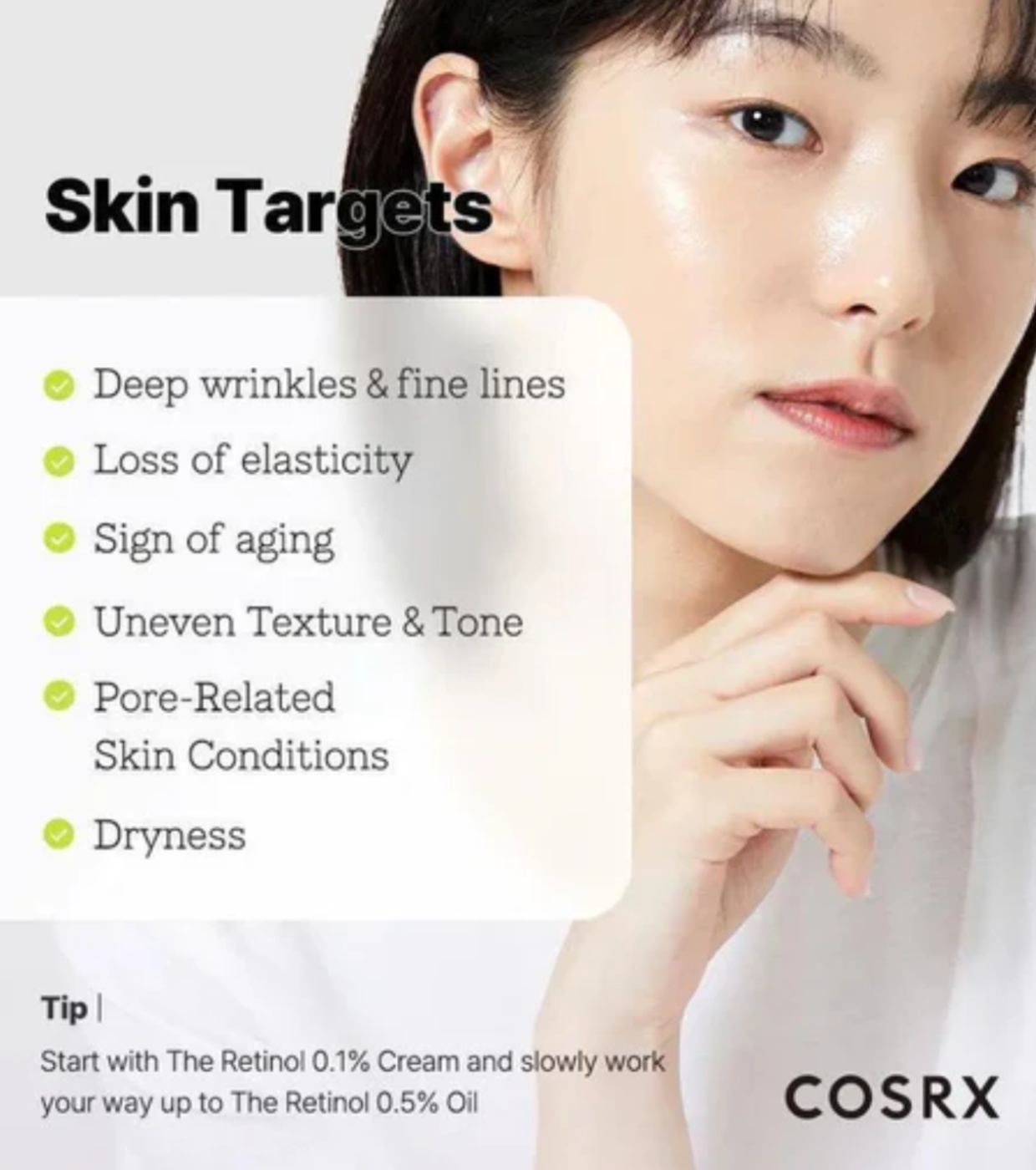 - Retinol 0.3%: stimulates collagen and regulates cell renewal.
