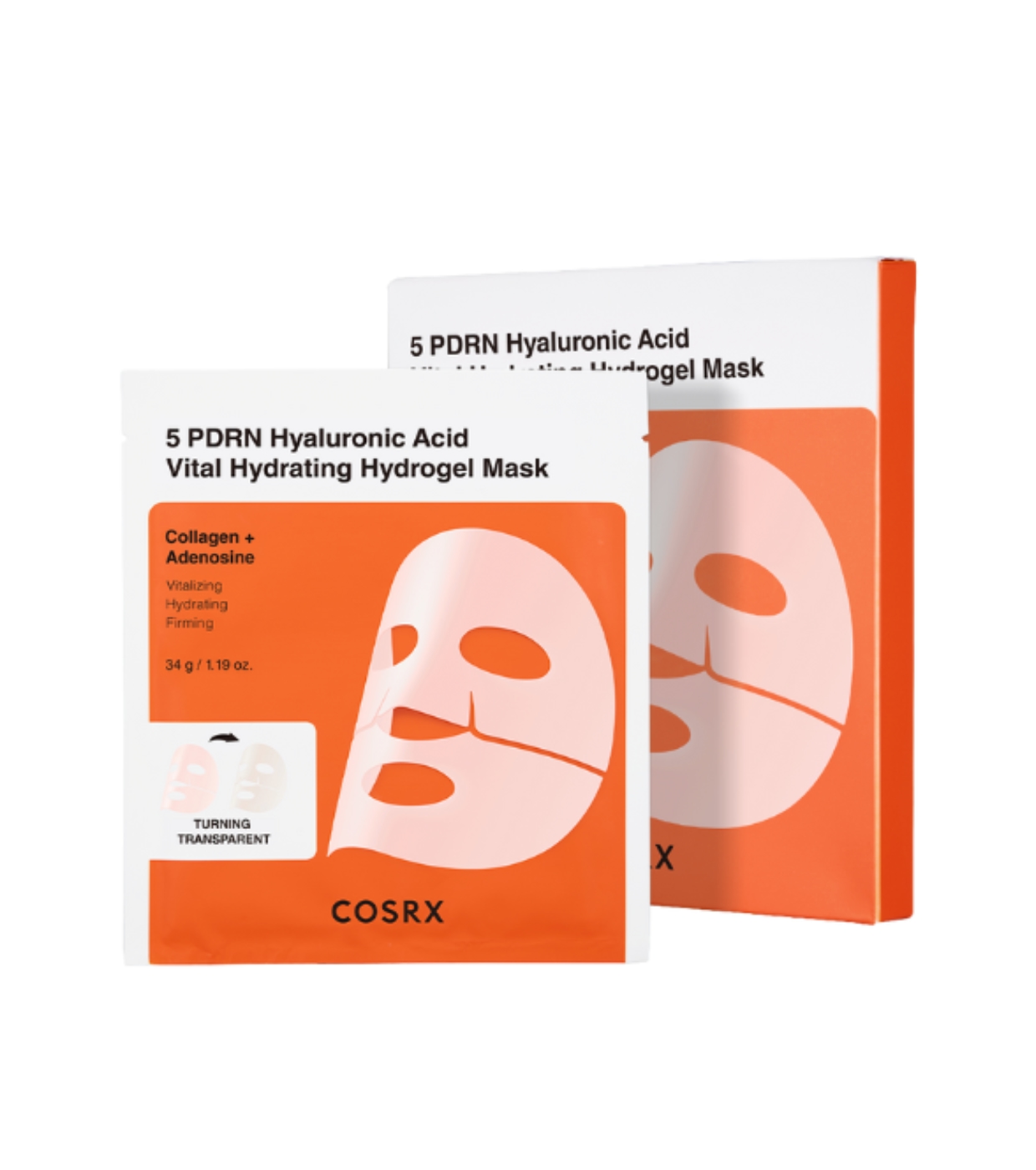 The 5 PDRN Hyaluronic Acid Vital mask from COSRX is an intensive hydration hydrogel that adapts to the skin like a second layer, becoming transparent as it releases its active ingredients.