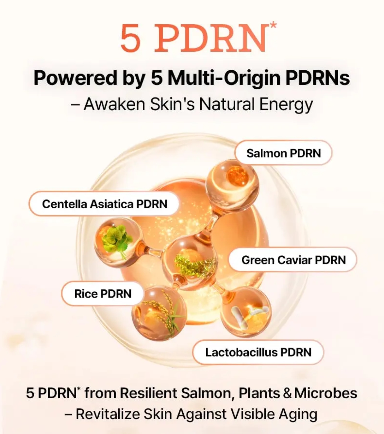 Formulated with 5 PDRNs and eight types of hyaluronic acid, it provides deep hydration while visibly improving texture and delivering a plumper, more luminous skin effect.