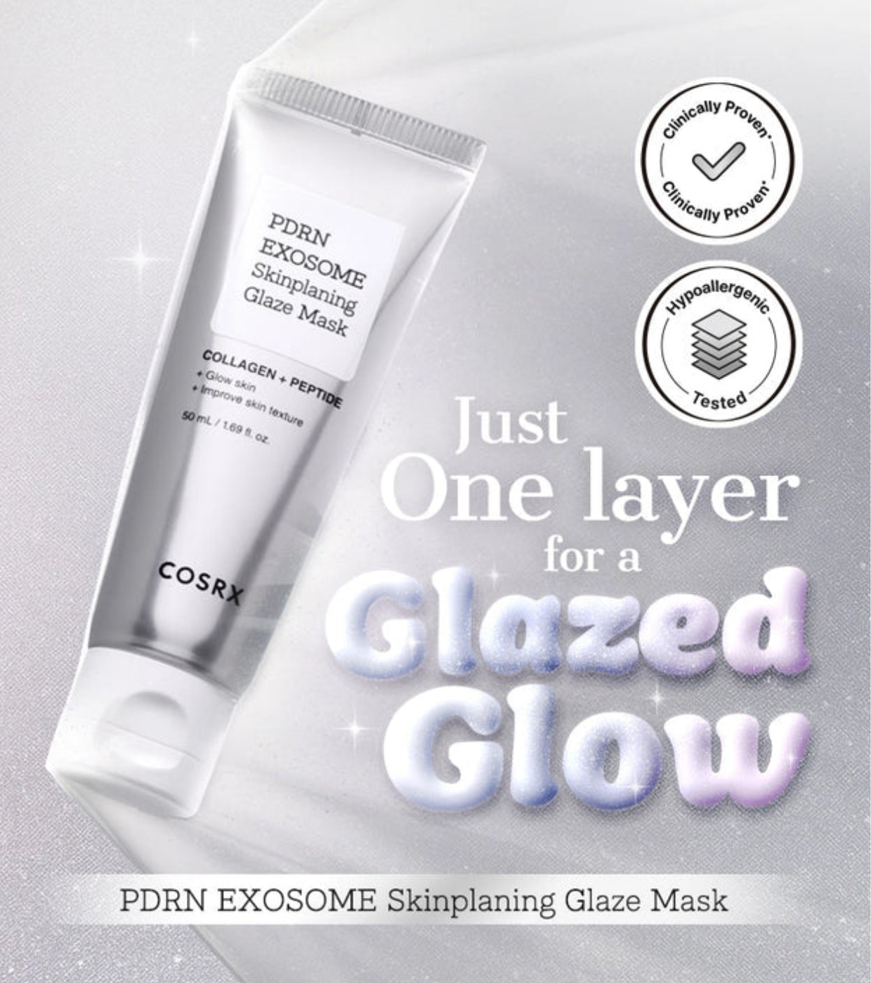 The PDRN EXOSOME Skinplaning Glaze peel-off mask from COSRX transforms dull skin into a juicy, firm, and luminous finish from the first use.