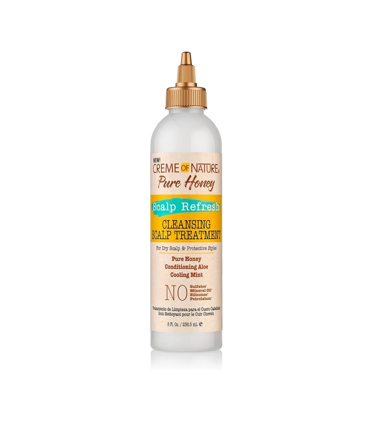 This treatment deeply cleanses the scalp of Creme of Nature without the need for water, dissolving product buildup and excess oil to leave an immediate feeling of freshness.