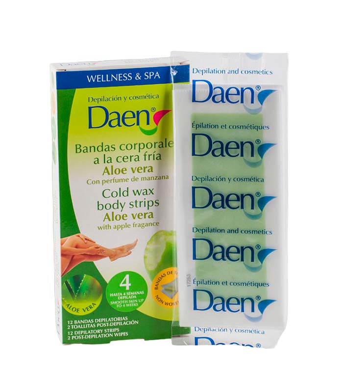 Cold wax strips. Benefits: Regenerates, repairs, nourishes, it is perfumed and last up to 4 weeks for the results. Features: With natural ingredients, contains 12 bands, 2 post-depilation wipes.