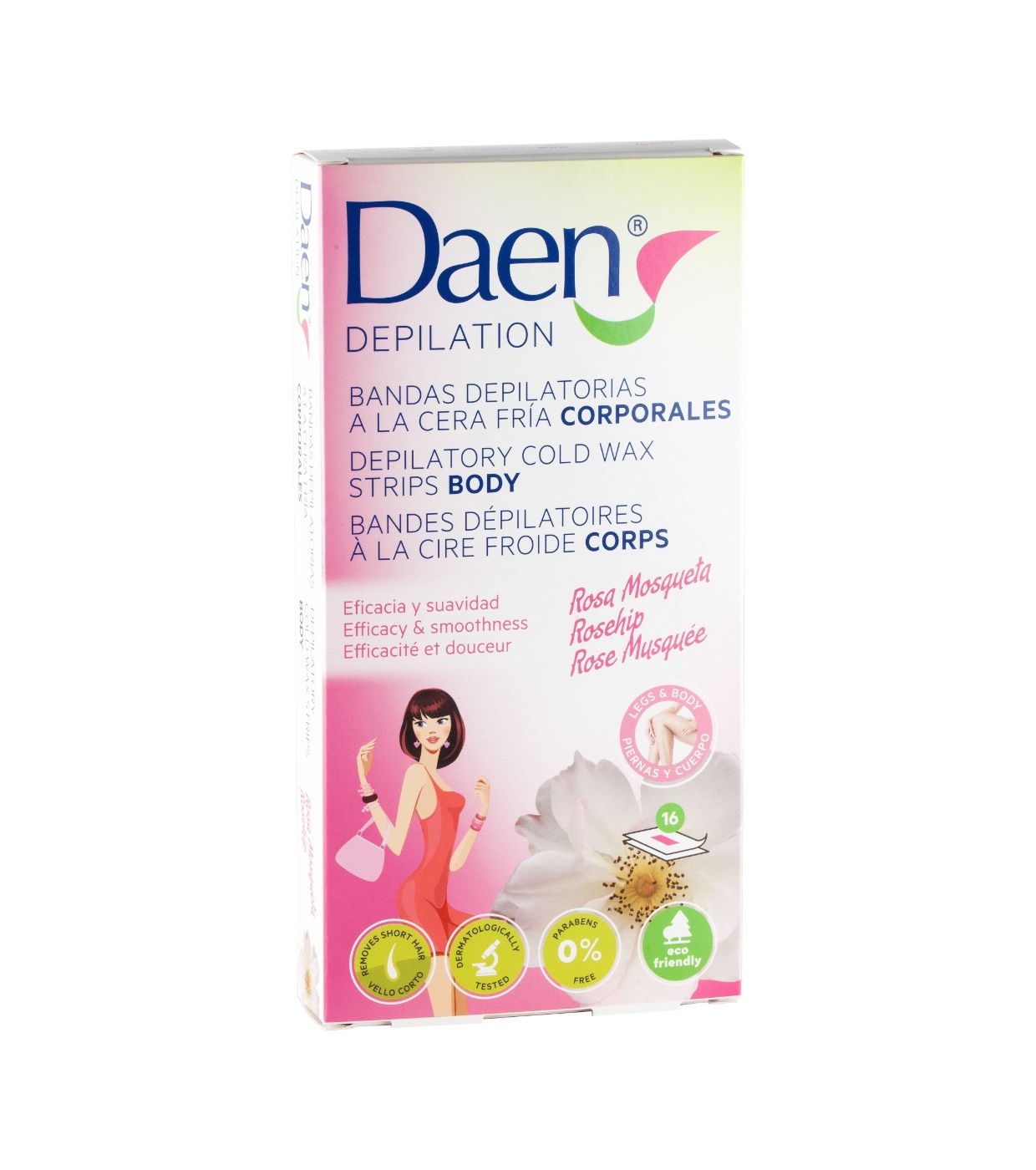 Cold wax strips. Benefits: Regenerates, repairs, nourishes, it is perfumed and last up to 4 weeks for the results. Features: With natural ingredients, contains 12 bands, 2 post-depilation wipes.