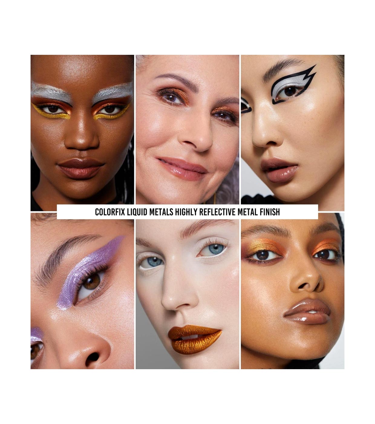 The Liquid Metals range of ColorFix is available in various shades, from more muted to more vibrant colours, all in a metallic finish.