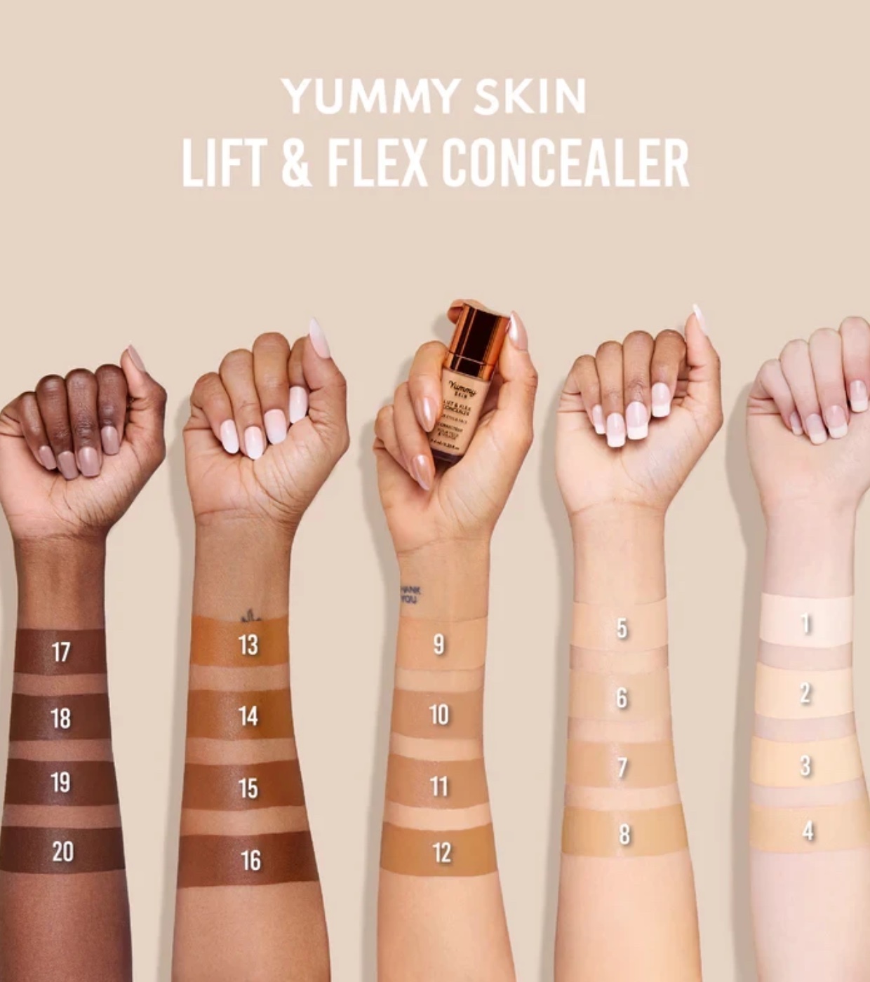 Lift and Flex Concealer's shade range is flexible and adapts to any skin tone, addressing various correction needs.