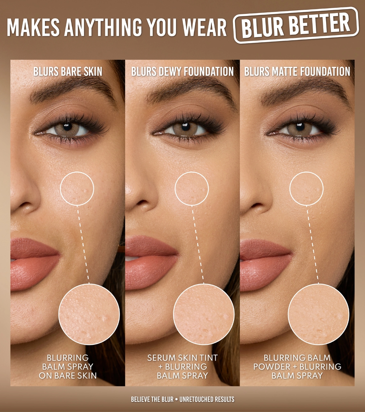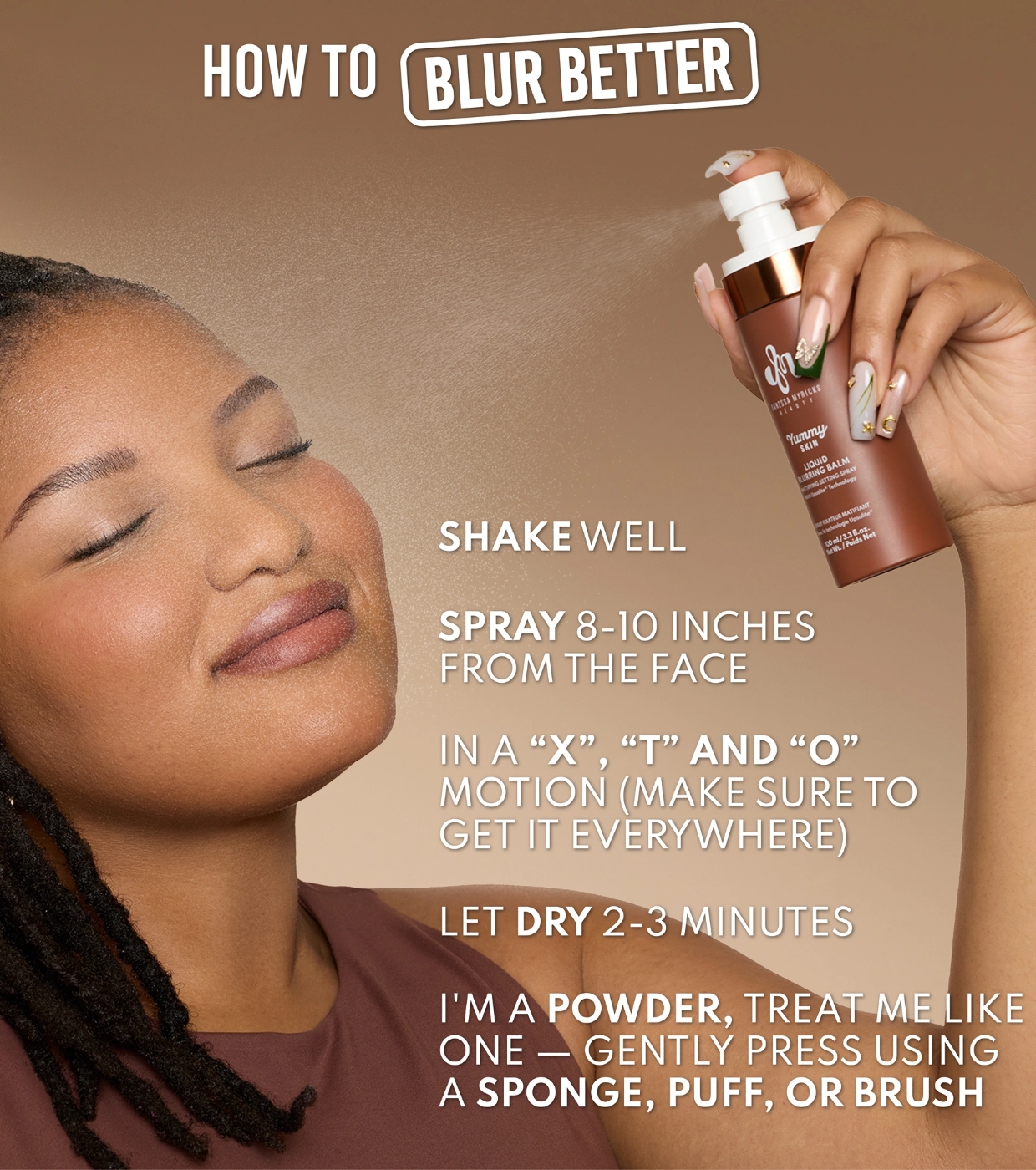 Discover Liquid Blurring Balm Liquid Blurring Balm, a powder-like setting spray that's perfect for mattifying, smoothing, and setting your makeup without weighing it down.