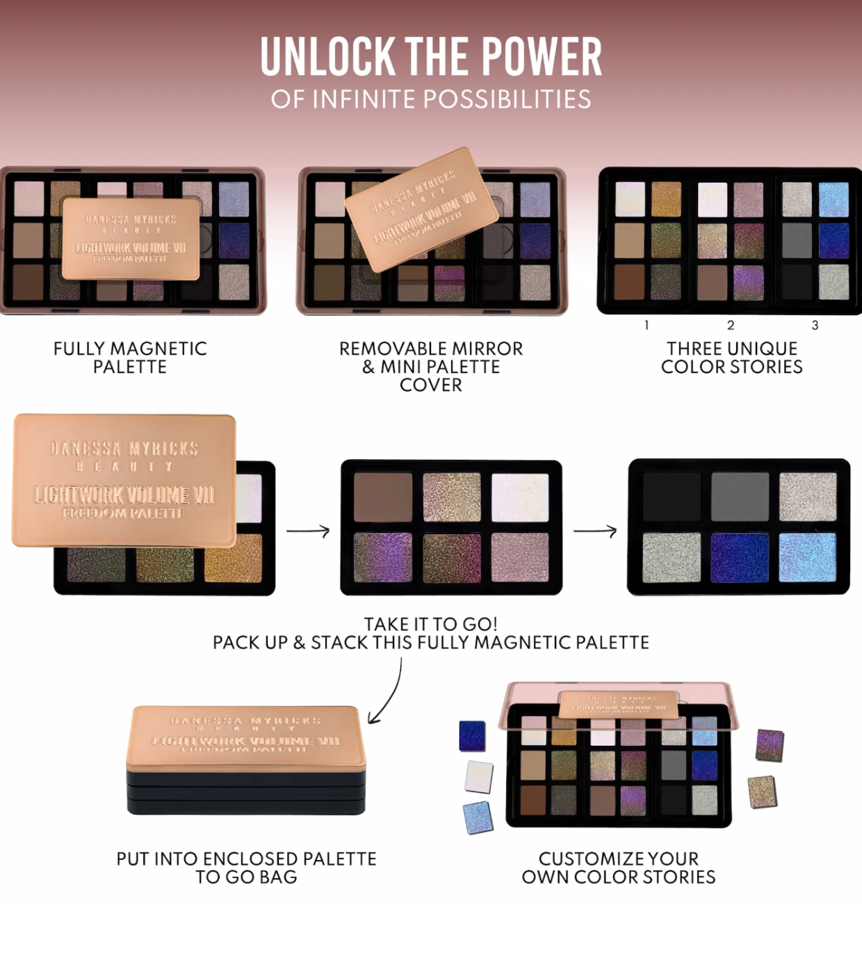 Celebrate 10 years of innovation, artistry and creativity with the Lightwork VII Palette by Danessa Myricks , an iconic edition that pays homage to the brand's past, present and future.