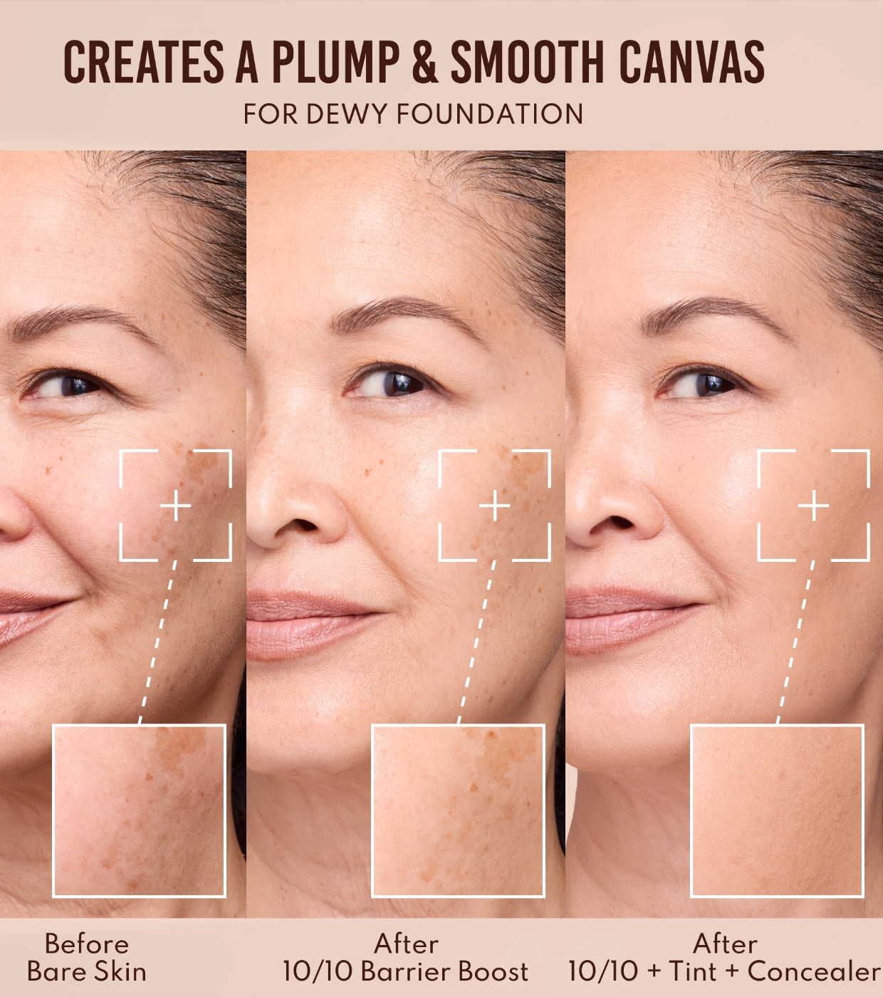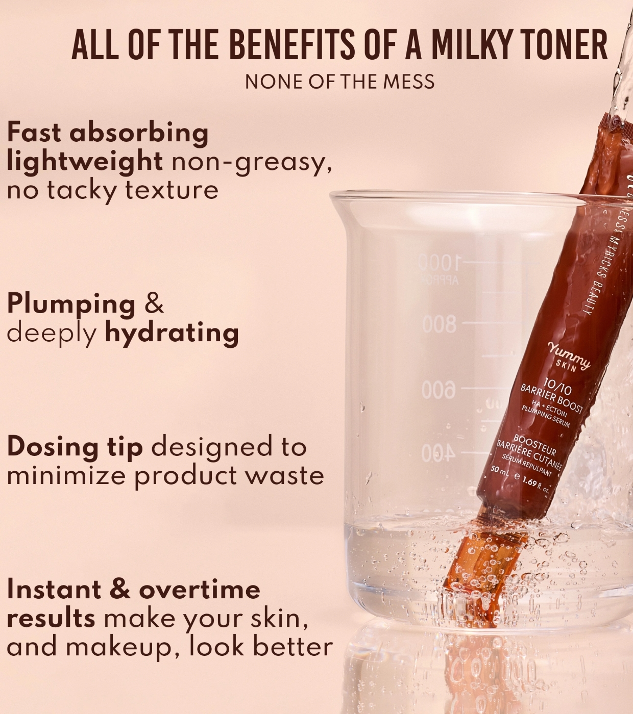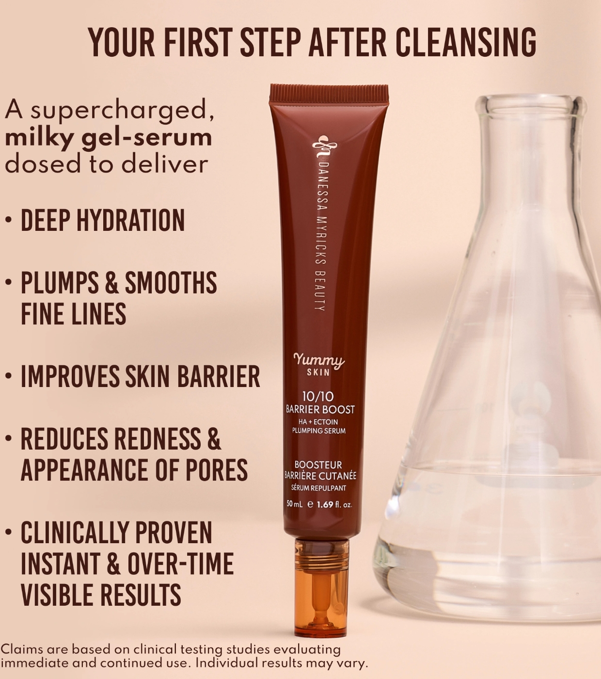 This lightweight serum 10-10 Barrier Boost by Danessa Myricks , hydrating and volumizing, restores the skin to its optimal state of balance, becoming the essential first step in your daily facial routine.