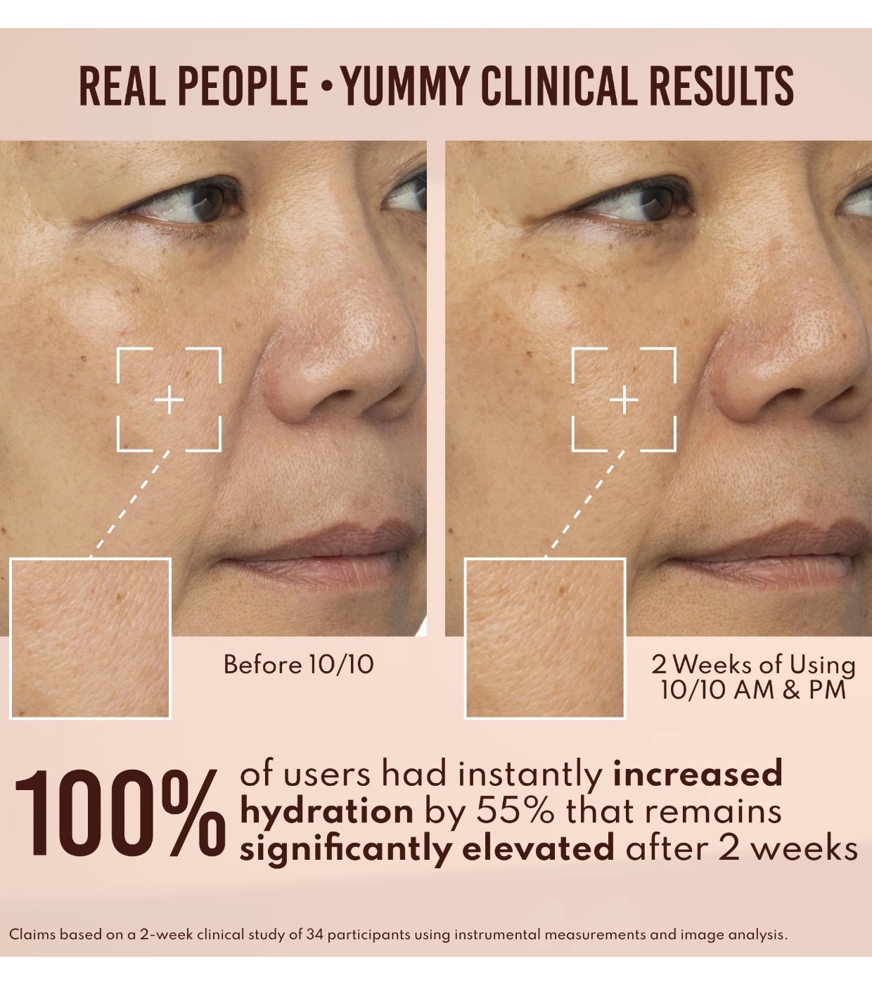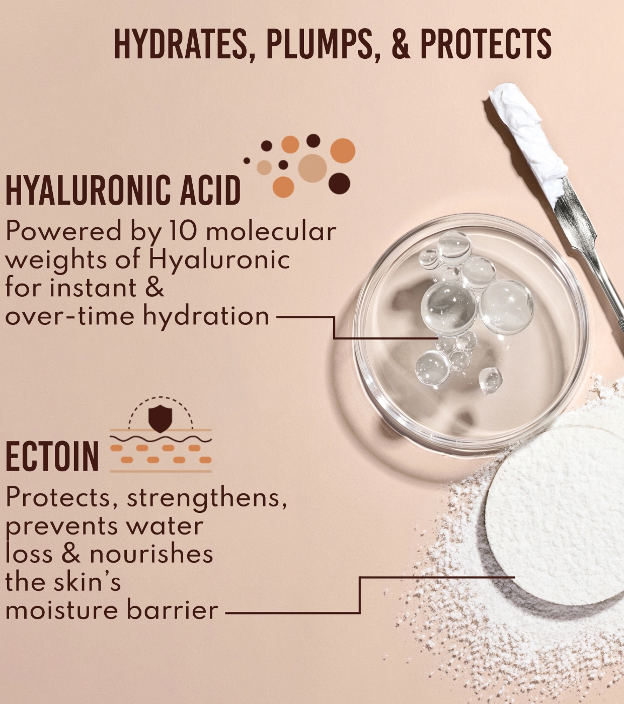 Its advanced formula combines 10 different molecular weights of hyaluronic acid, which work in synergy to provide immediate and progressive deep hydration, helping to visibly plump the skin and improve its elasticity.