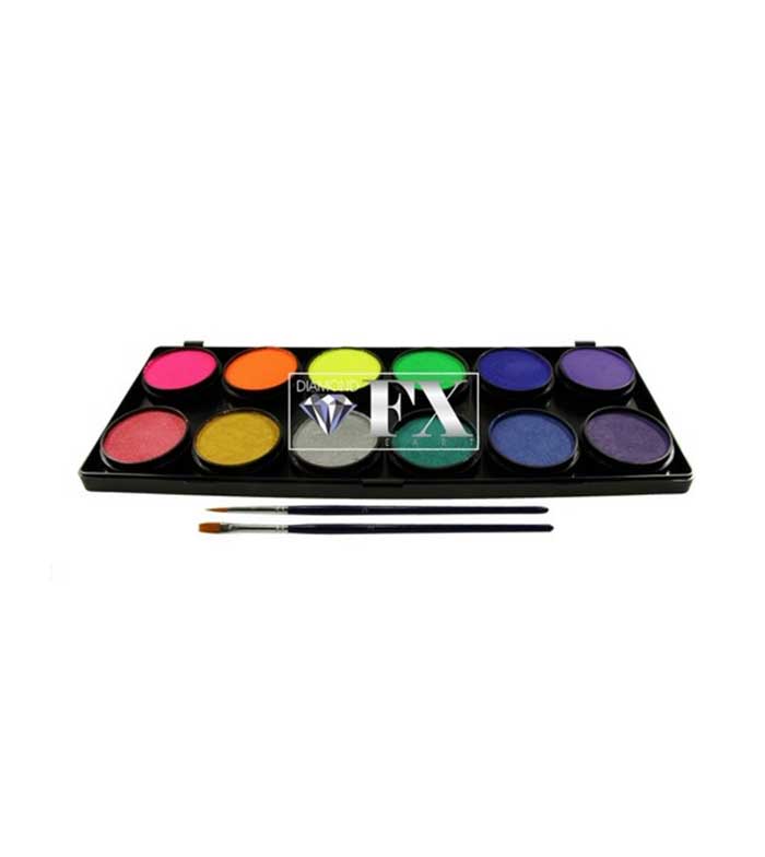 Palette of 12 aquacolors of different colors, perfect for creating all kinds of looks and effects on the skin.