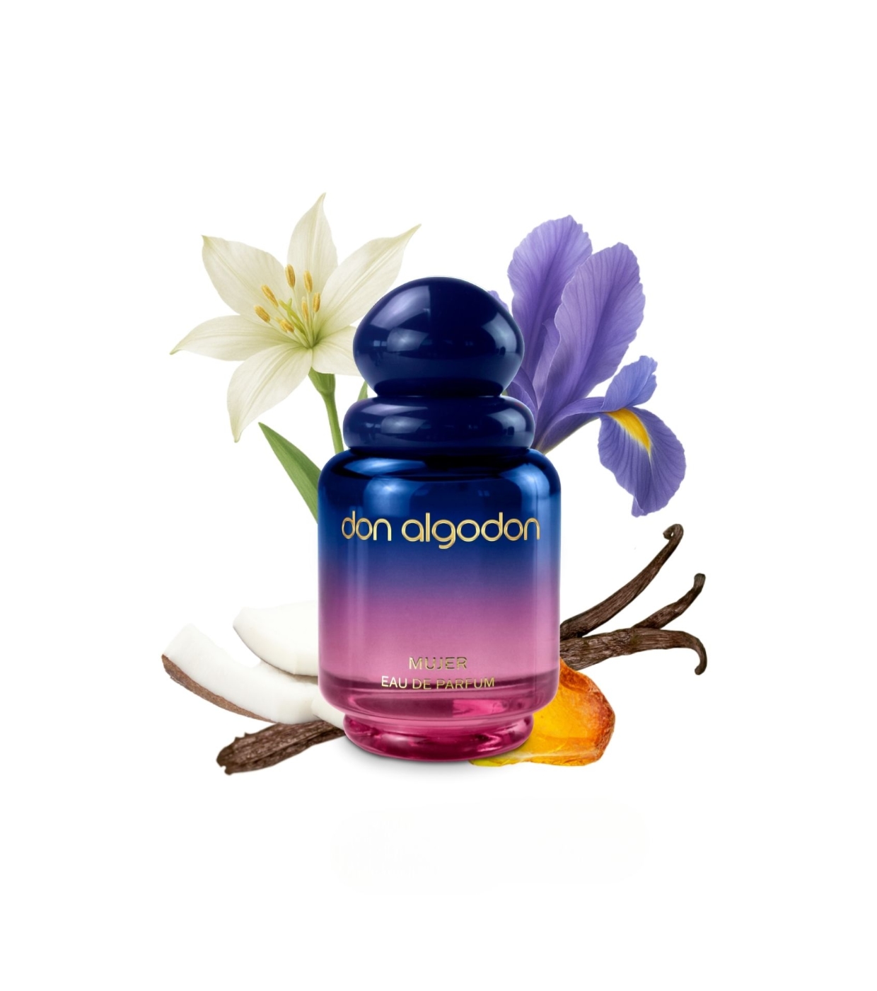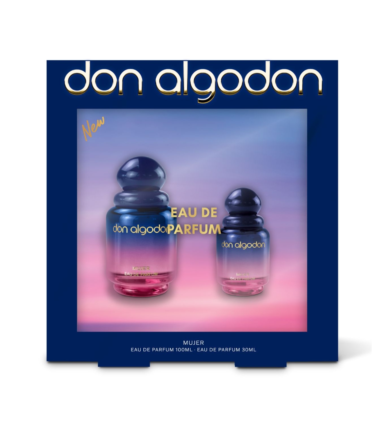 Discover the Eau de parfum 100ml + 30ml Mujer set from Don Algodón, a fragrance that blooms with strength and delicacy, like a flower in the desert.