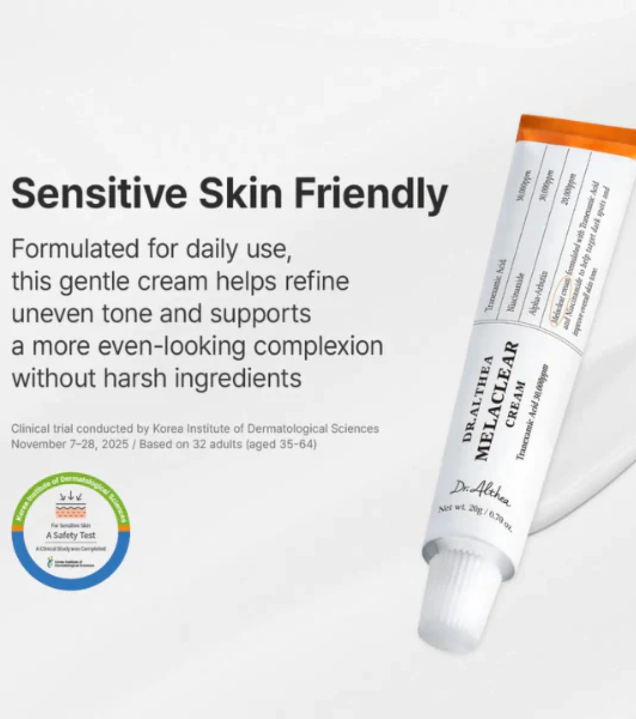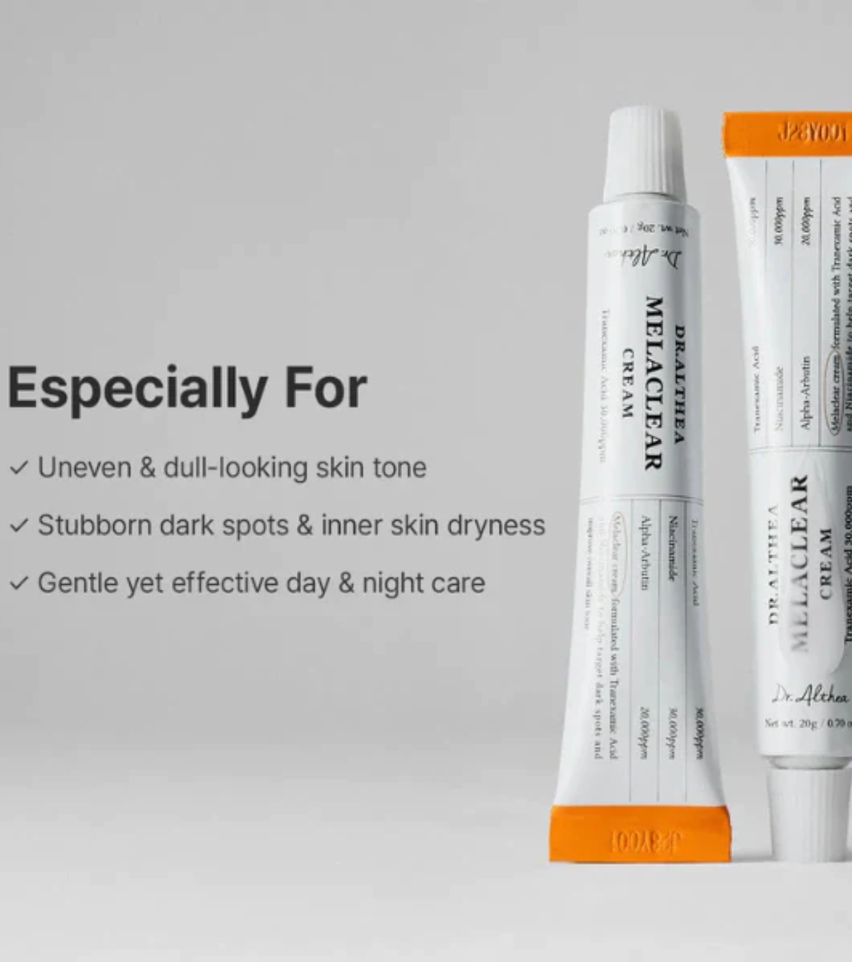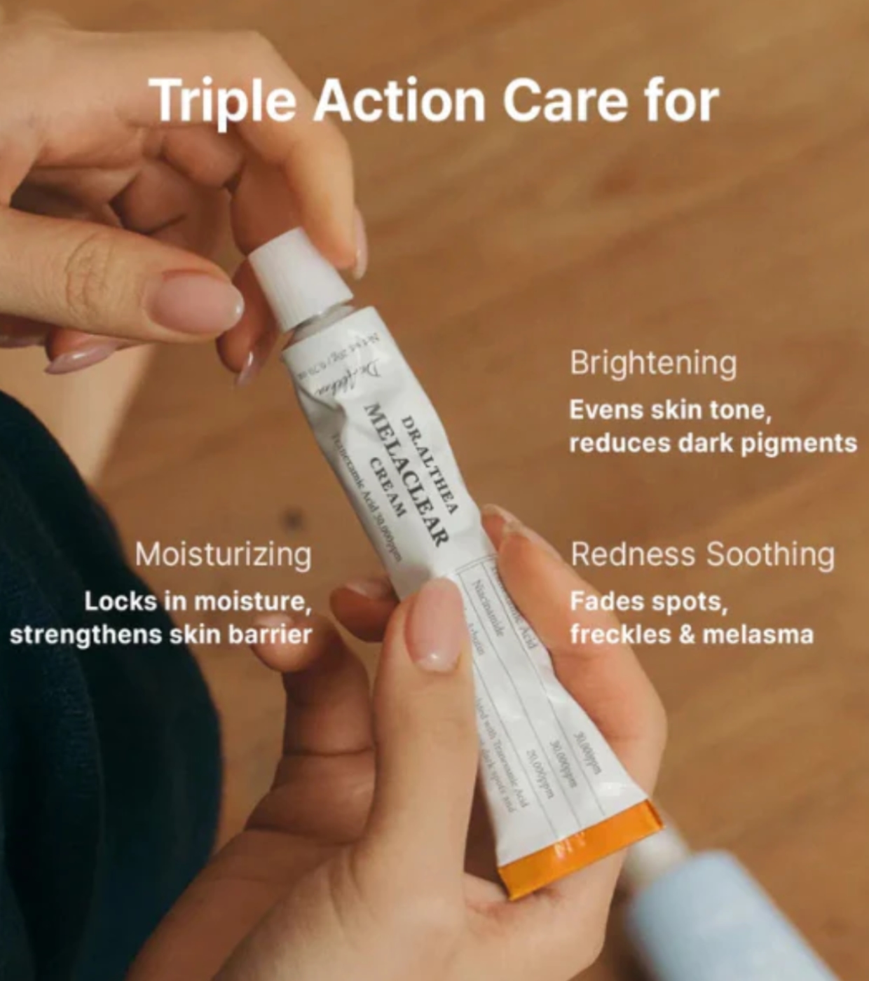 Dr. Althea's Melaclear cream is a depigmenting treatment designed to target spots, uneven skin tone, and lack of radiance without compromising the skin barrier, even on sensitive skin.