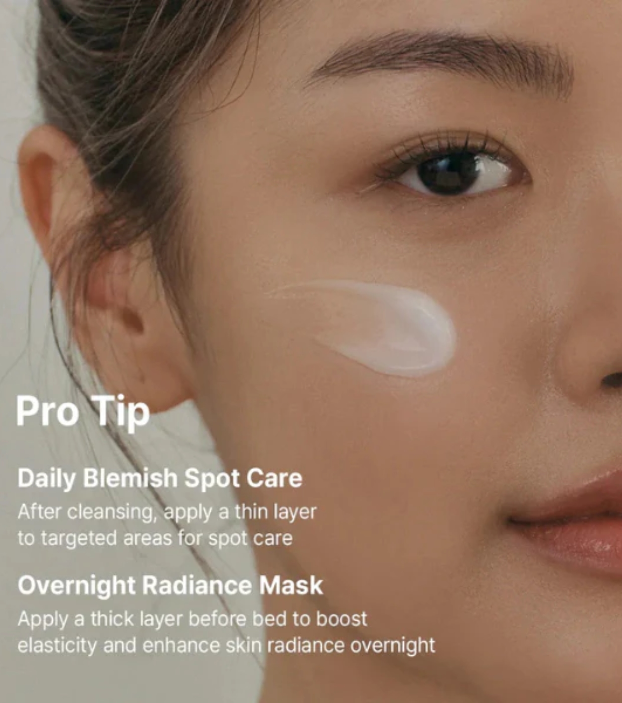 As an illuminating night mask: apply a more generous layer before bed to boost luminosity and elasticity.