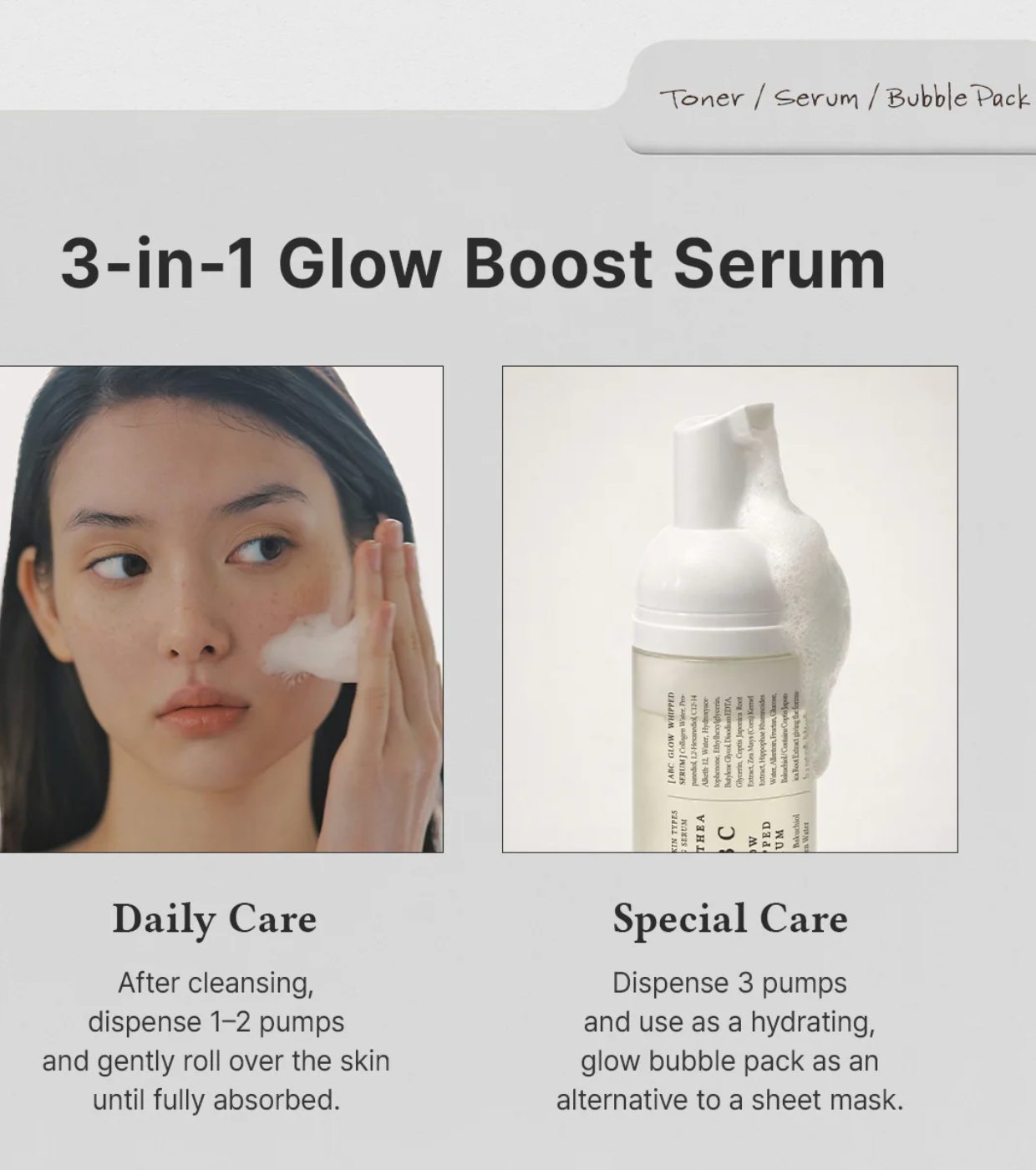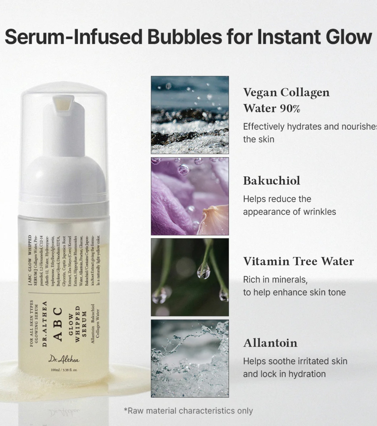 An innovative serum with a foam texture from Dr. Althea that transforms into water, combining toner-like hydration with the glow effect of a serum in one step.