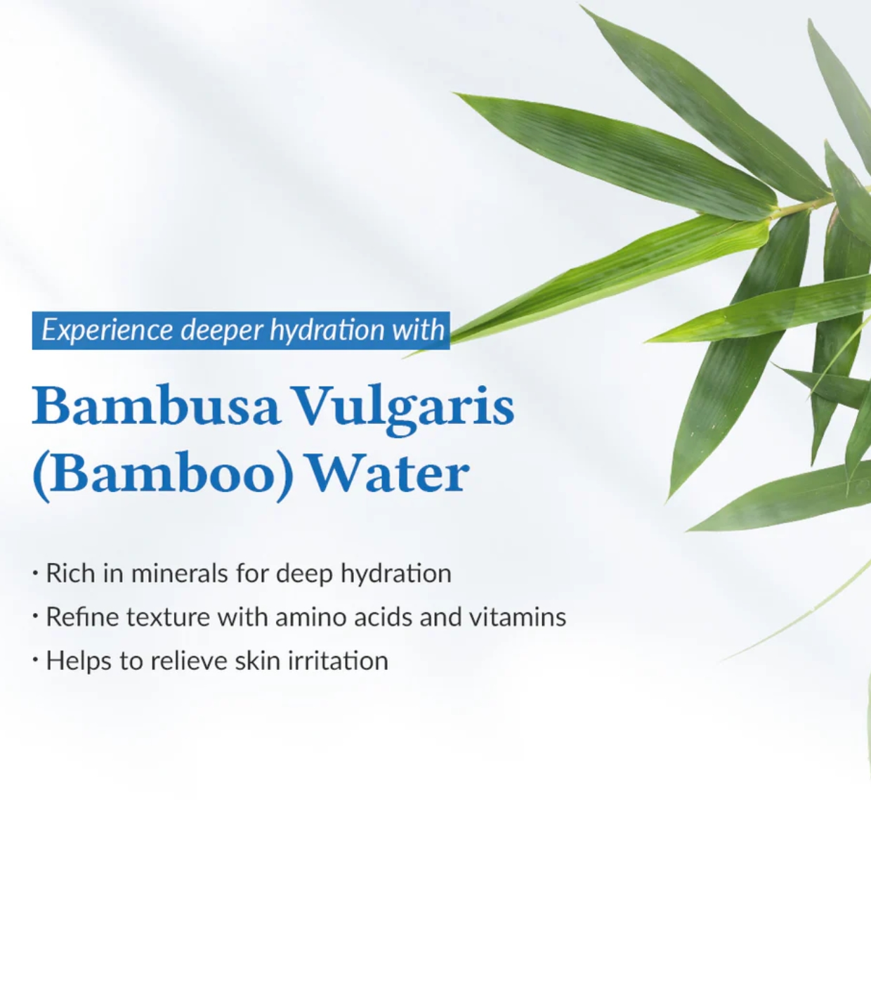 Its formula contains 70% bamboo water, known for its ability to provide intense yet gentle hydration, helping to strengthen the moisture barrier and keep skin comfortable throughout the day.