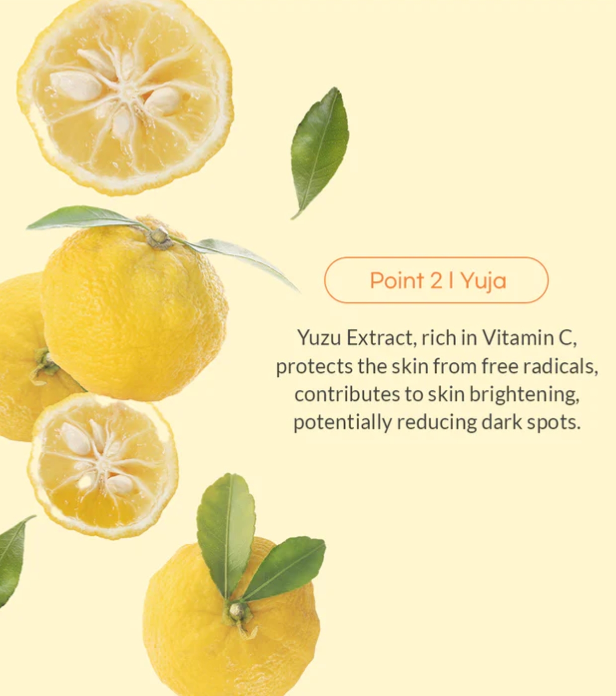 Aqua, Glycerin, Butylene Glycol, Niacinamide, Hippophae Rhamnoides (Sanddorn) Fruit Extract, Citrus Junos (Yuzu) Fruit Extract, Methyl Gluceth-20, Dipropylene Glycol, 1.2-Hexanediol, Polyglyceryl-10 Laurate, Hydroxyacetophenone, Diethoxyethyl Succinate, Arginin, Carbomer, Coptis Japonica Root Extract, Ethylhexylglycerin, Disodiumedta, Allantoin, Terminalia Ferdinandiana Fruit Extractt, Myrciaria Dubia (Camu Camu) Fruit Extract, Michelia Alba Flower Oil, Linalool