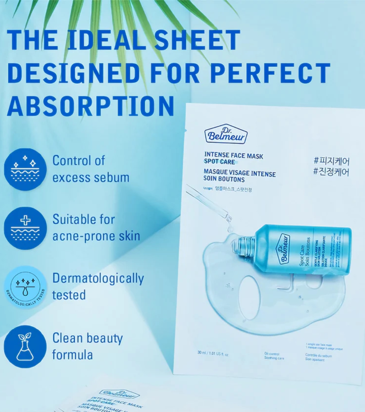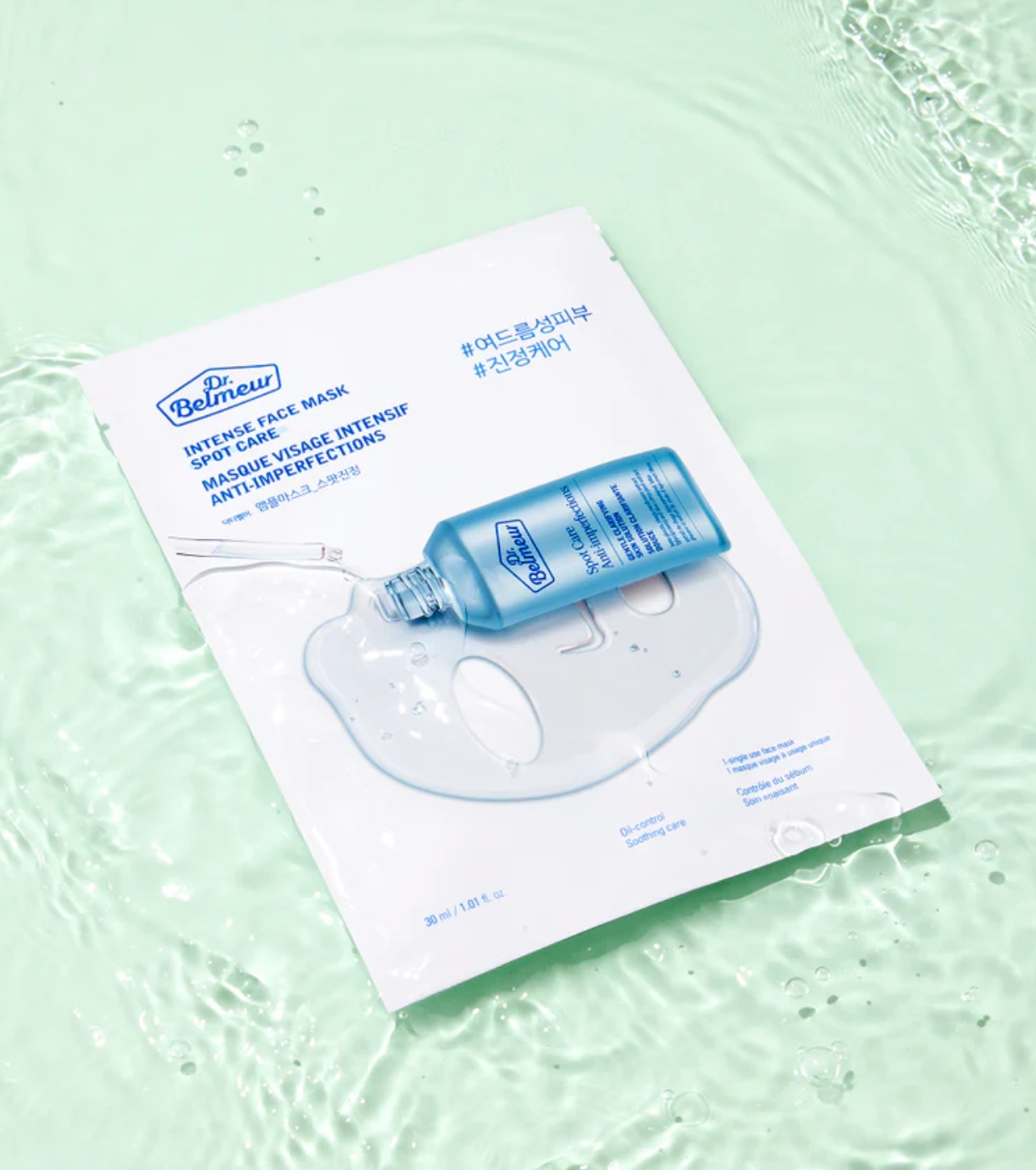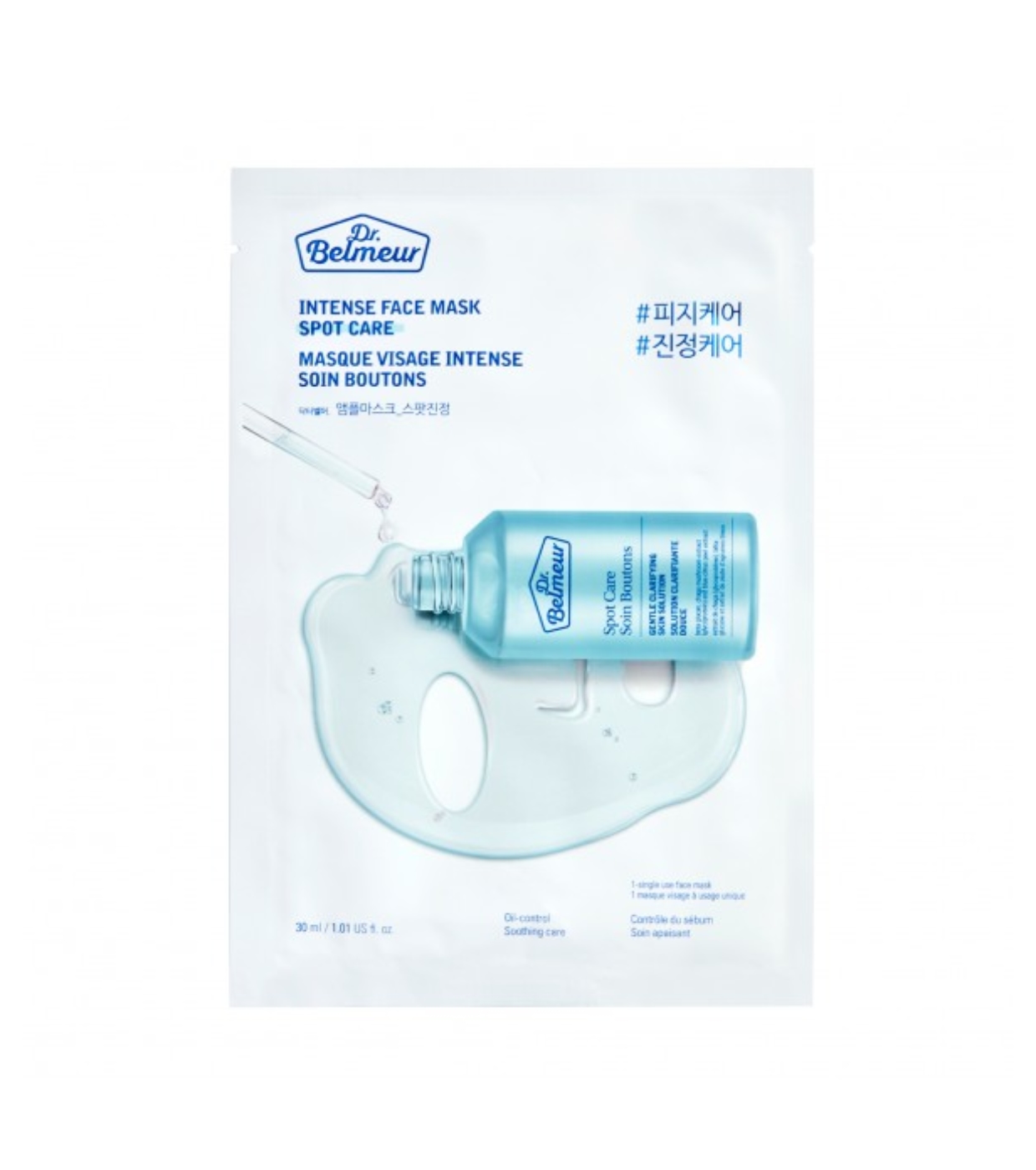 Spot Care Intense Face Mask's Dr. Belmeur is an intensive treatment sheet mask designed for oily, irritated, or blemished skin.
