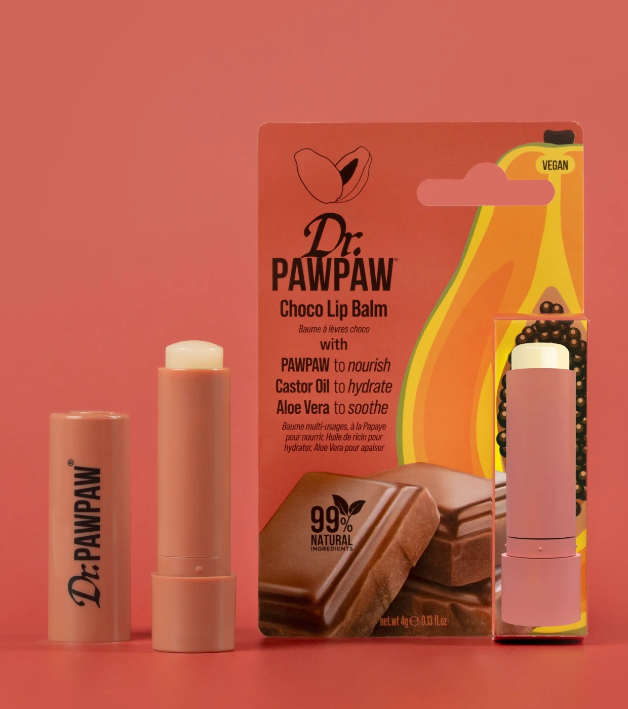 Enjoy exquisite lip care with Dr. PAWPAW Dr. PAWPAW Lip Balm , a 99% natural, vegan miracle balm formulated to deeply hydrate and leave lips soft, nourished, and with a delicious chocolate scent.