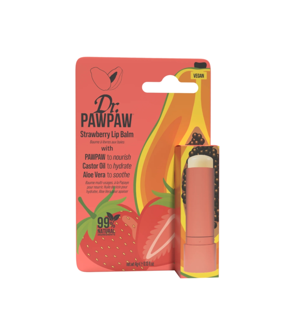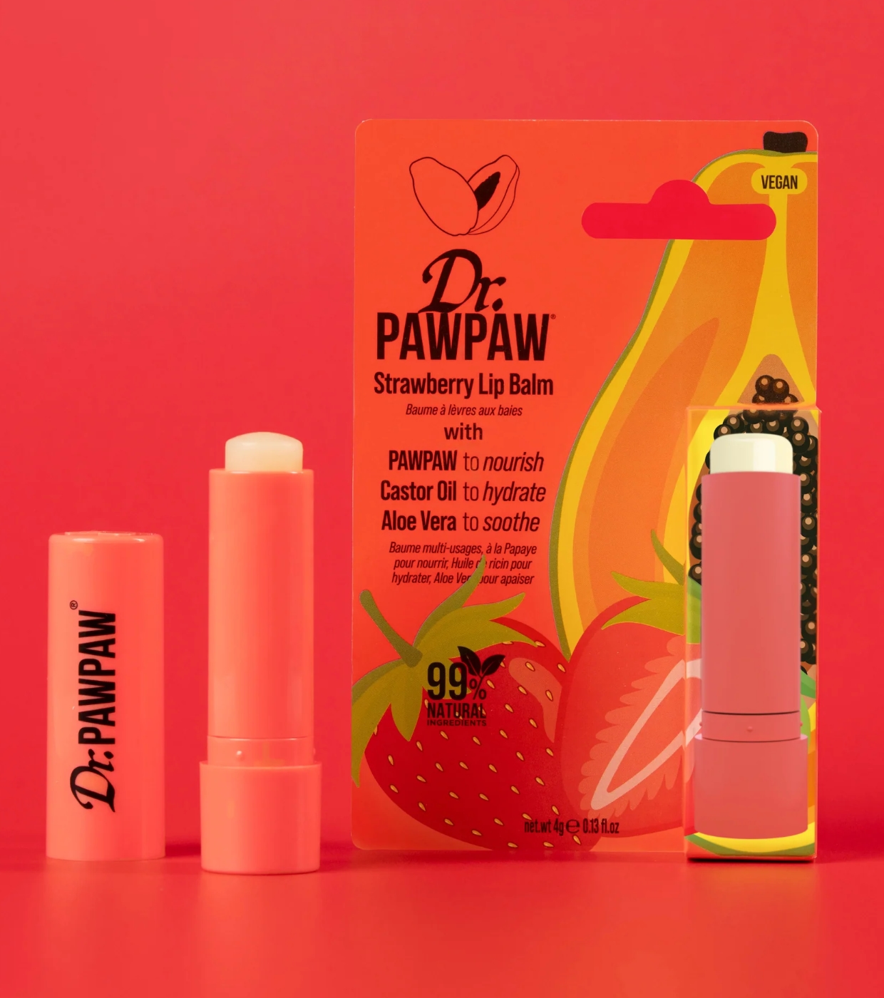 Strawberry Strawberry Lip Balm Stick is so much more than a moisturizer—it's a 99% natural, vegan miracle balm perfect for nourishing, softening, and protecting your lips with a delicious juicy strawberry scent.