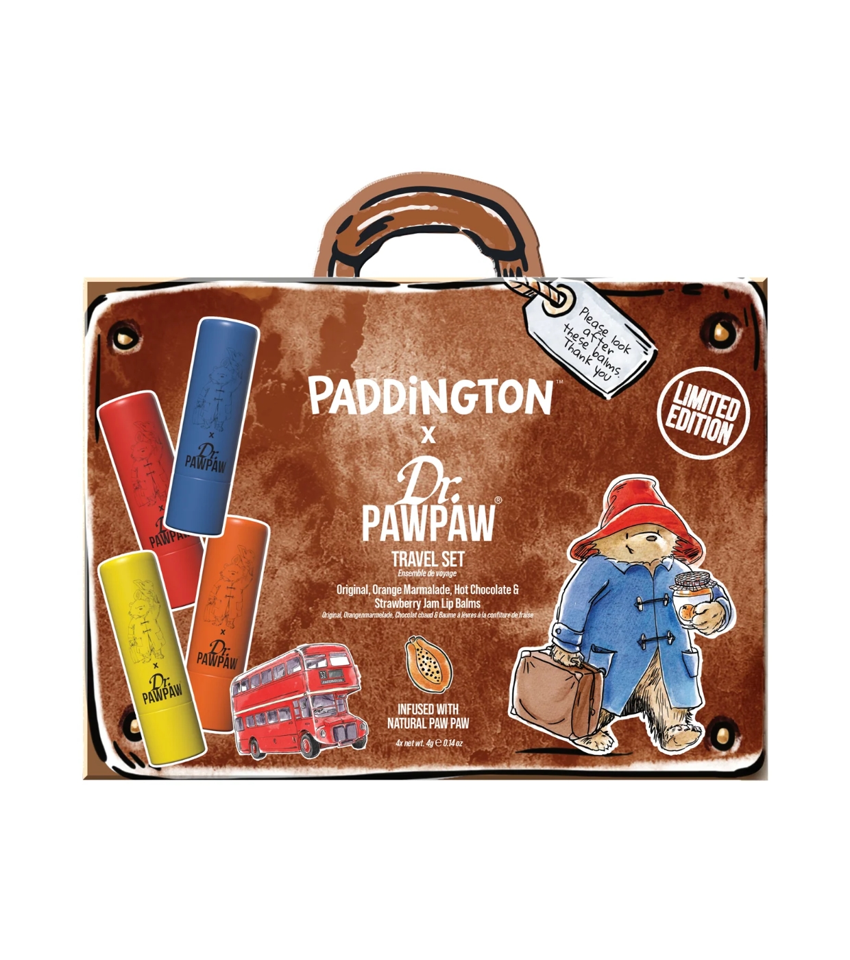 Discover the Travel Set Dr.PAWPAW inspired by Paddington™ , the ideal companion to keep your lips hydrated, soft and protected wherever you go.