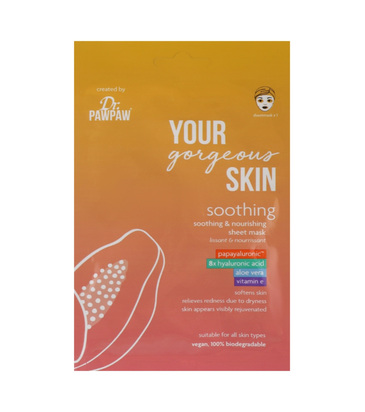 End your day with a comforting skincare ritual thanks to Dr. PAWPAW's Soothing Mask , an intensive sheet mask designed to hydrate, soothe, and revitalize the skin, while providing a sensorial experience that balances body and mind.