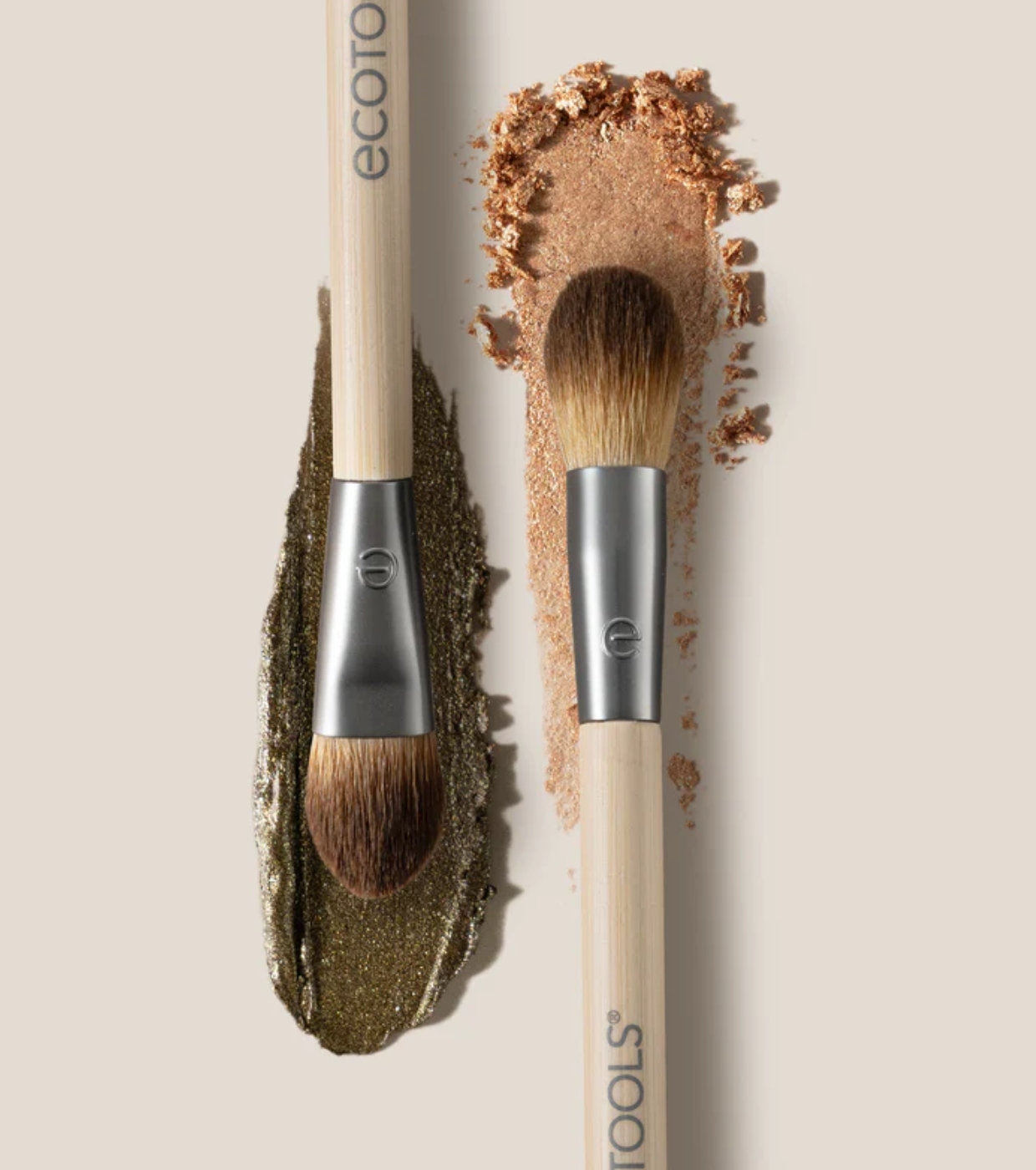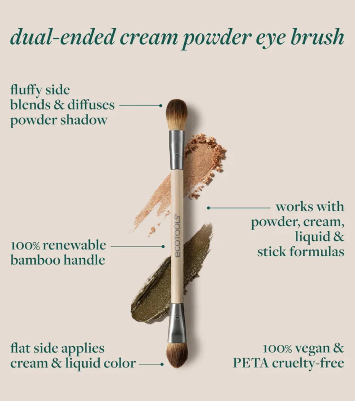 The Cream & Powder Dual-Ended brush from EcoTools is a versatile 2-in-1 tool designed to apply and blend eyeshadows with precision and ease.