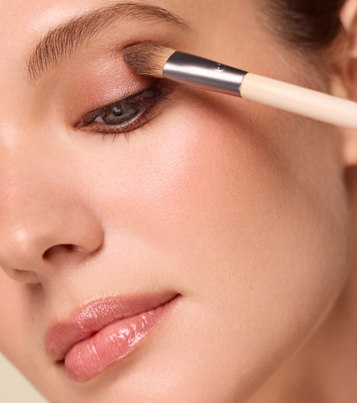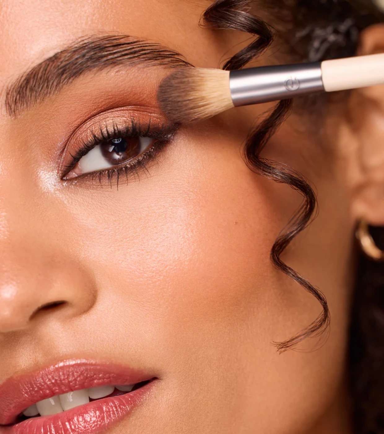 It has a flat side, perfect for applying cream or liquid shadows to the eyelid with an even finish, and a looser, fluffier side that allows you to blend and soften powder or cream shadows in the crease or at the edges, achieving natural transitions.
